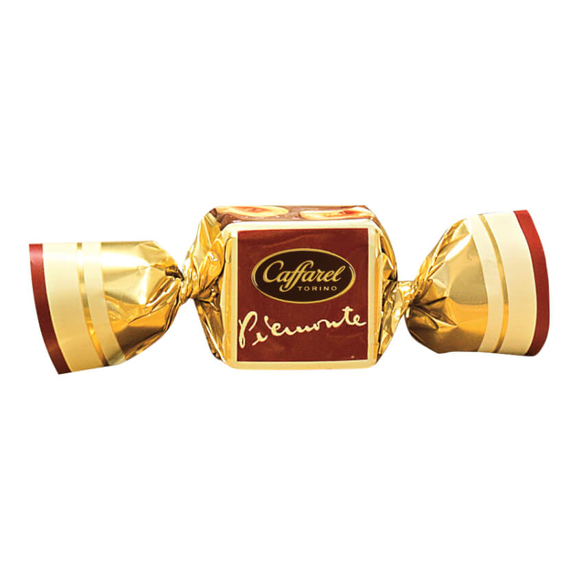 Feine Zartbitter-Gianduia-Haselnusspralinen mit ganzen, gerösteten, echten Piemonteser Haselnüssen. Einzeln als Bonbon verpackt, lose, circa 7 – 8 Stück je 100 g. Glutenfrei.
