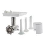 Das Fleischwolf Basic Paket enthält einen Fleischwolf mit Spritzschutz, Tablett und Stopfer sowie 3 Wurstfüllaufsätze 10/20/25 mm und eine Lochscheibe 4,5 mm. Einen Fleischwolf in der Küche einzusetzen bedeutet, dass Sie sich beim Kochen auf ein völlig neues Niveau begeben. Und das gilt, ganz gleich ob Sie lieber Fleisch oder Fisch essen. Sie können ihn für die Zubereitung von Fischfarce ebensogut verwenden wie zum Durchdrehen von Hackfleisch!