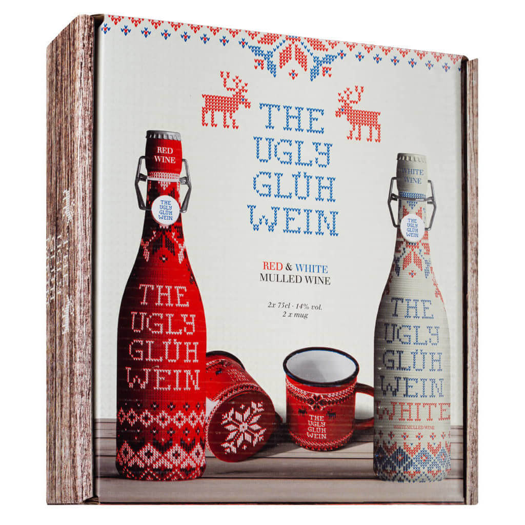 Geschenkbox The Ugly Glühwein - roter & weißer Glühwein mit Tassen
