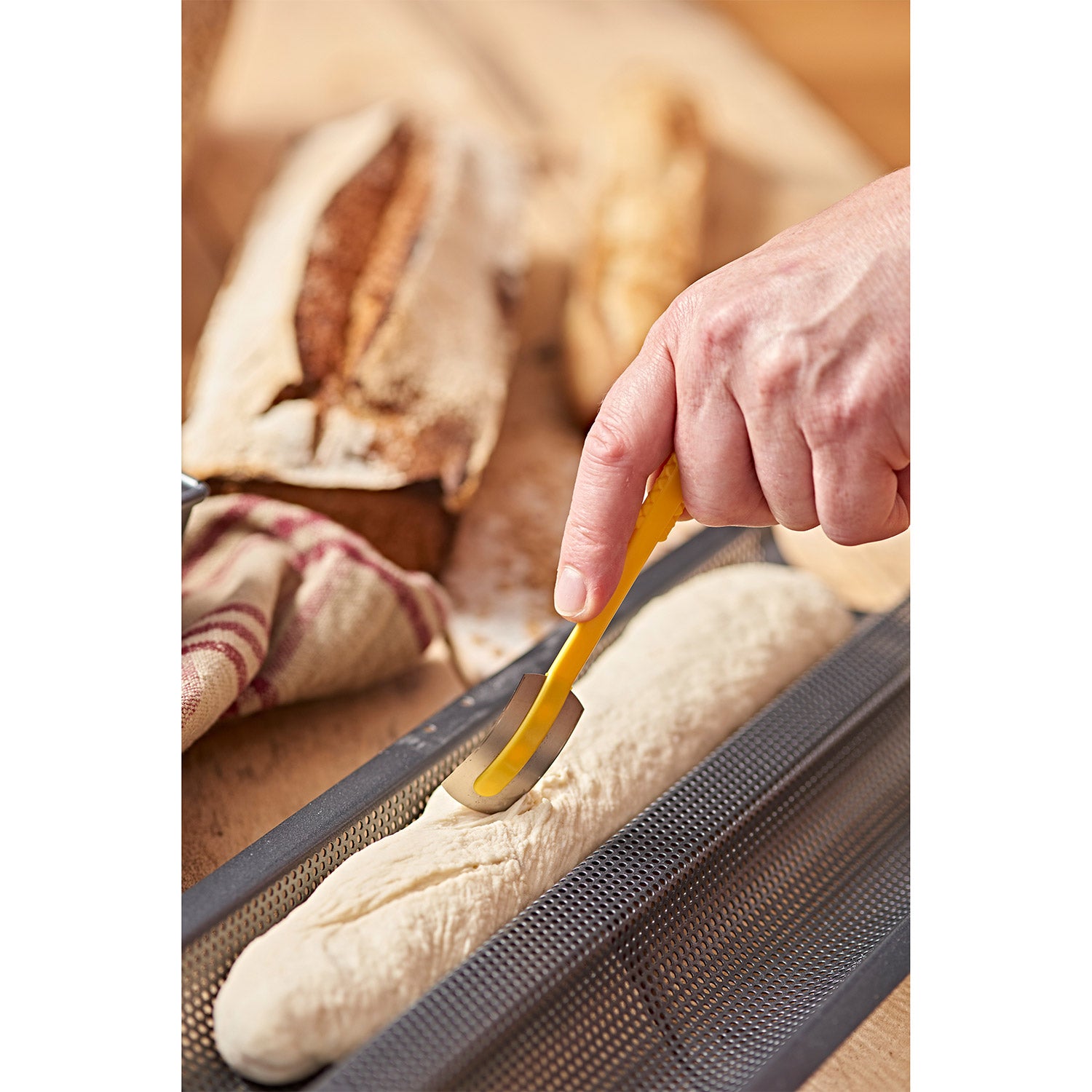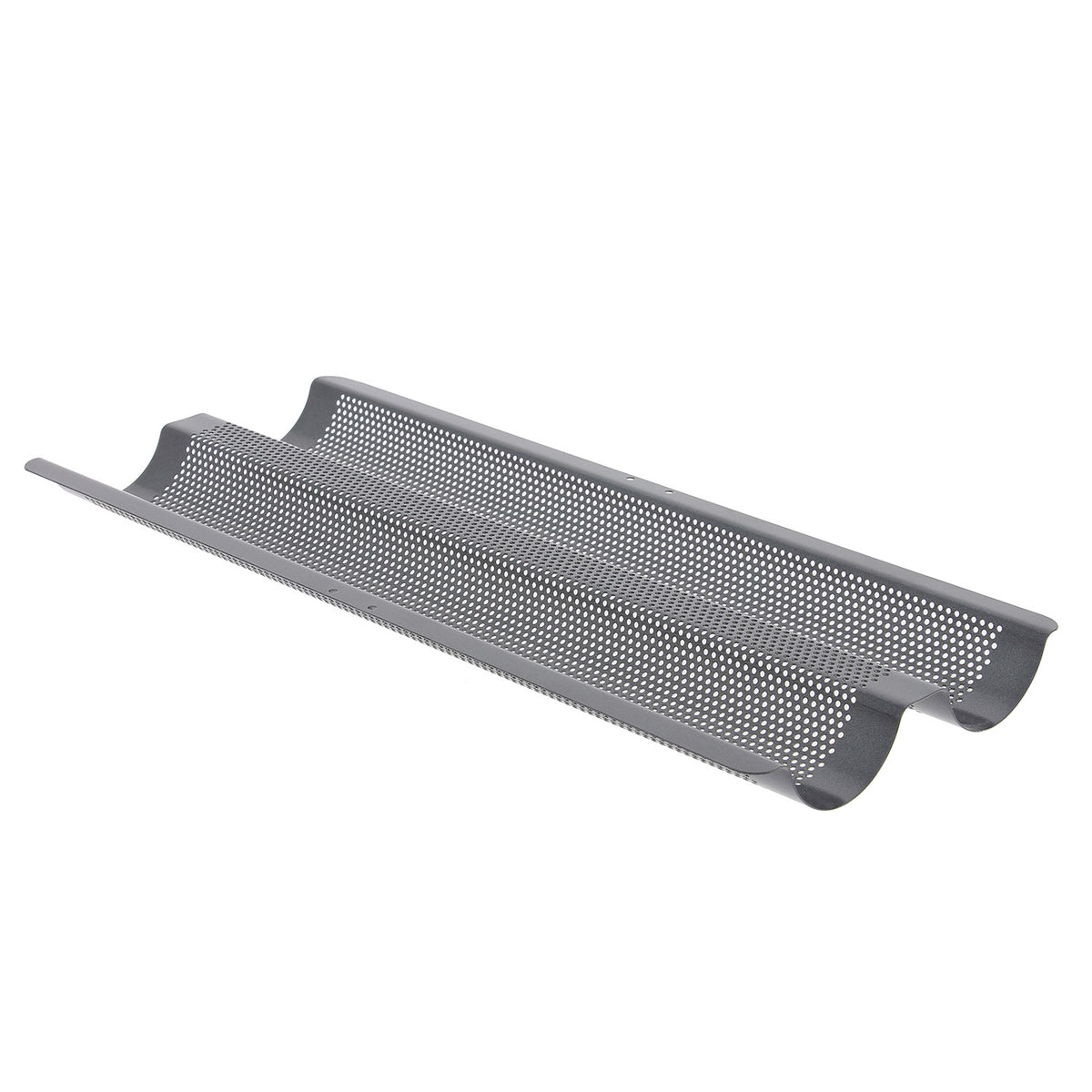 Ein Backblech von De Buyer aus gelochten und beschichteten Stahl für 2 Baguettes. Die Perforationen ist für eine optimale Zirkulation der heißen Luft zuständig. Sie erzielen Hervorragende Backergebnisse dank des Stahls.
