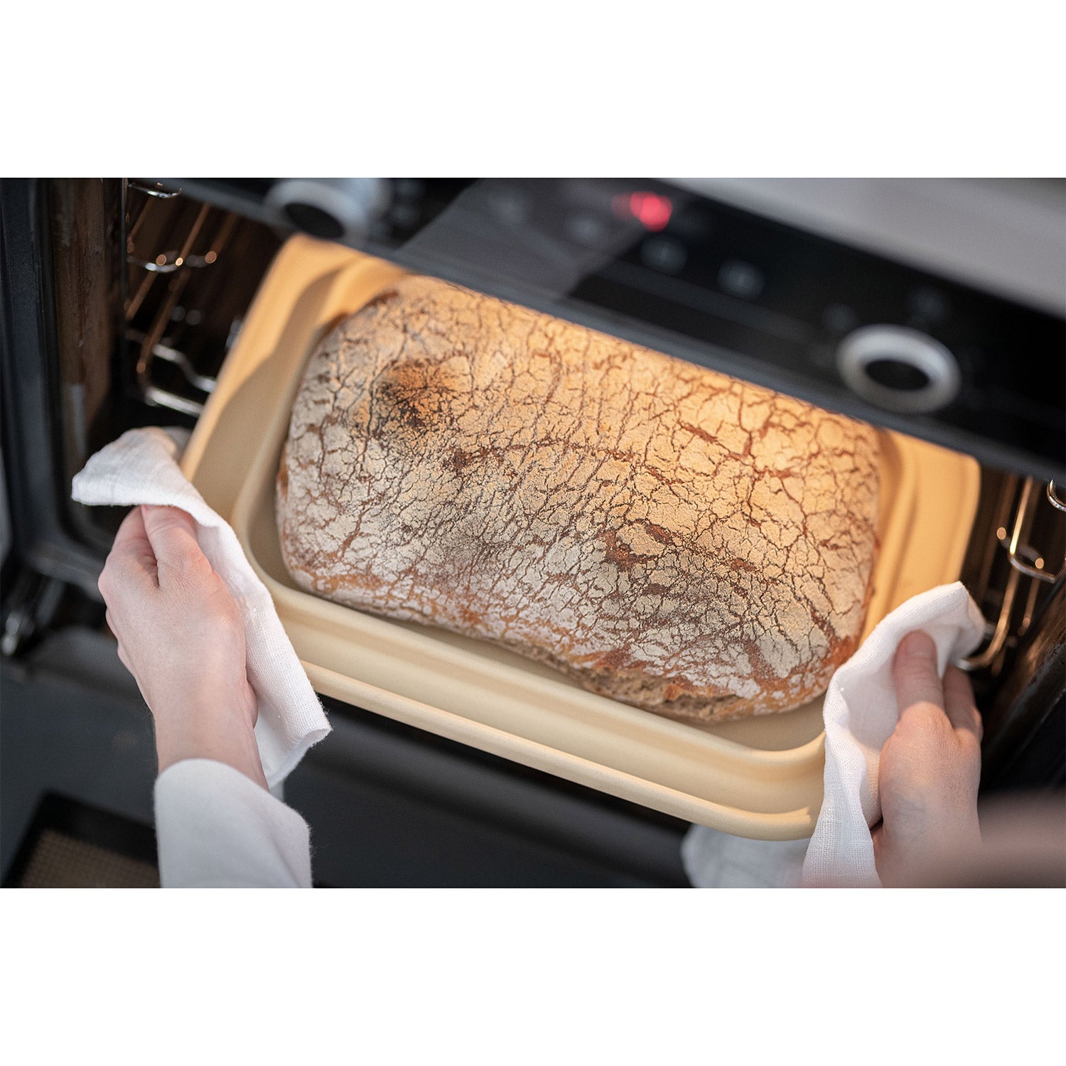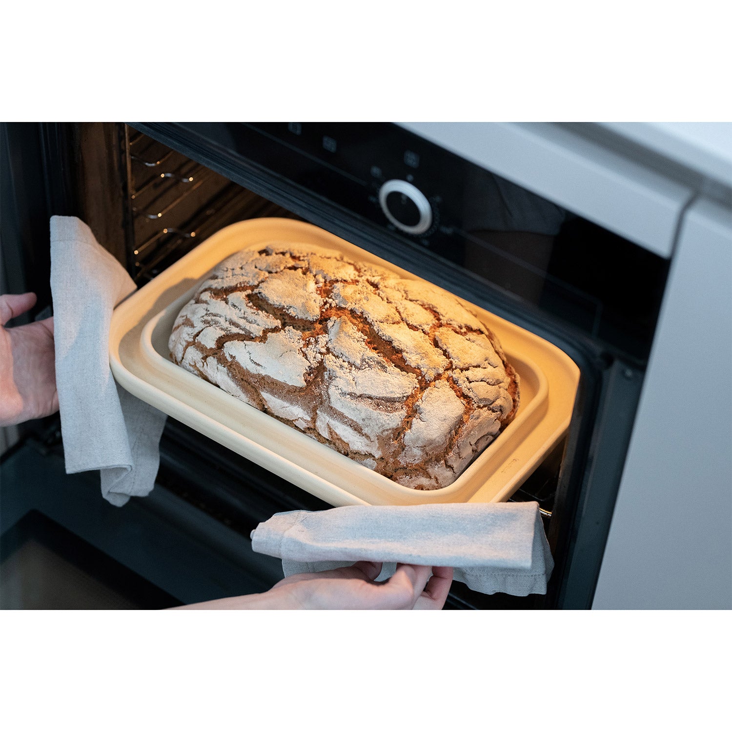 Dadurch kann sich eine wunderbare Kruste aufbauen, die den Geschmack des Brotes maßgeblich beeinflusst. Gerade bei Brot gilt die Kruste als besonders wertvoll. In ihr stecken die Geschmacksträger und wichtige Inhaltsstoffe – sie schützt das Brot und hält es lange frisch. Auch bei Kuchen oder Pizza sorgt die gezielte Feuchtigkeit in Verbindung mit der wärmespeichernden Keramik für beste Backergebnisse.