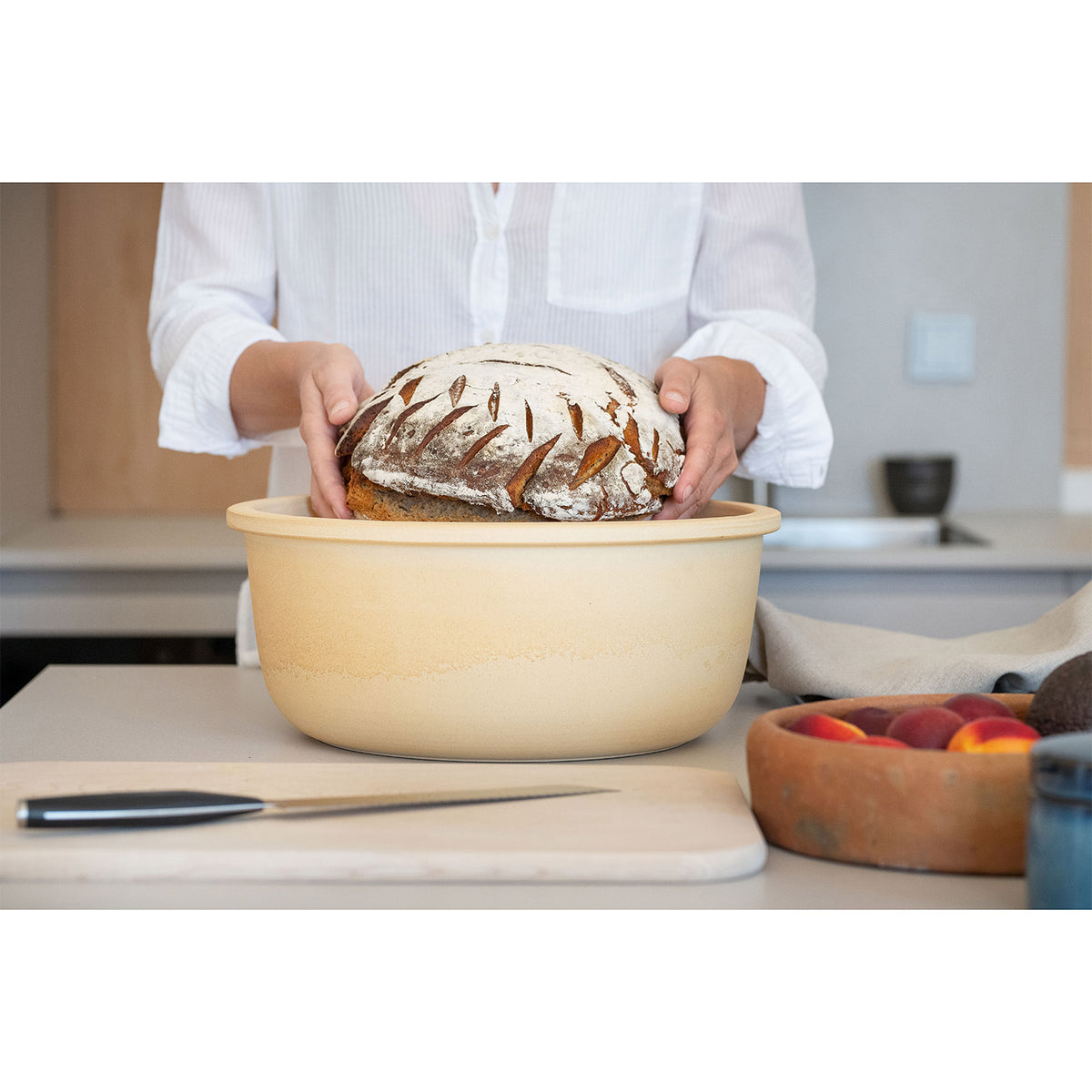 Mit dem Brottopf von Denk bleiben ihre Backwaren lange frisch. Er ist aus CeraNatur gefertigt, hat einen Durchmesser von 35 cm, eine Höhe von 15 cm und wiegt ca. 4,5 kg.