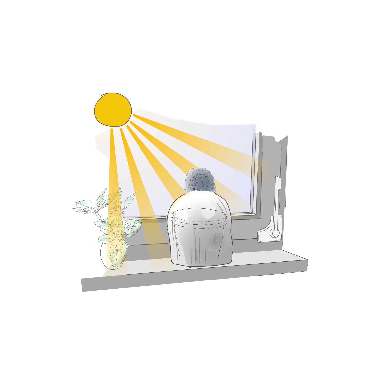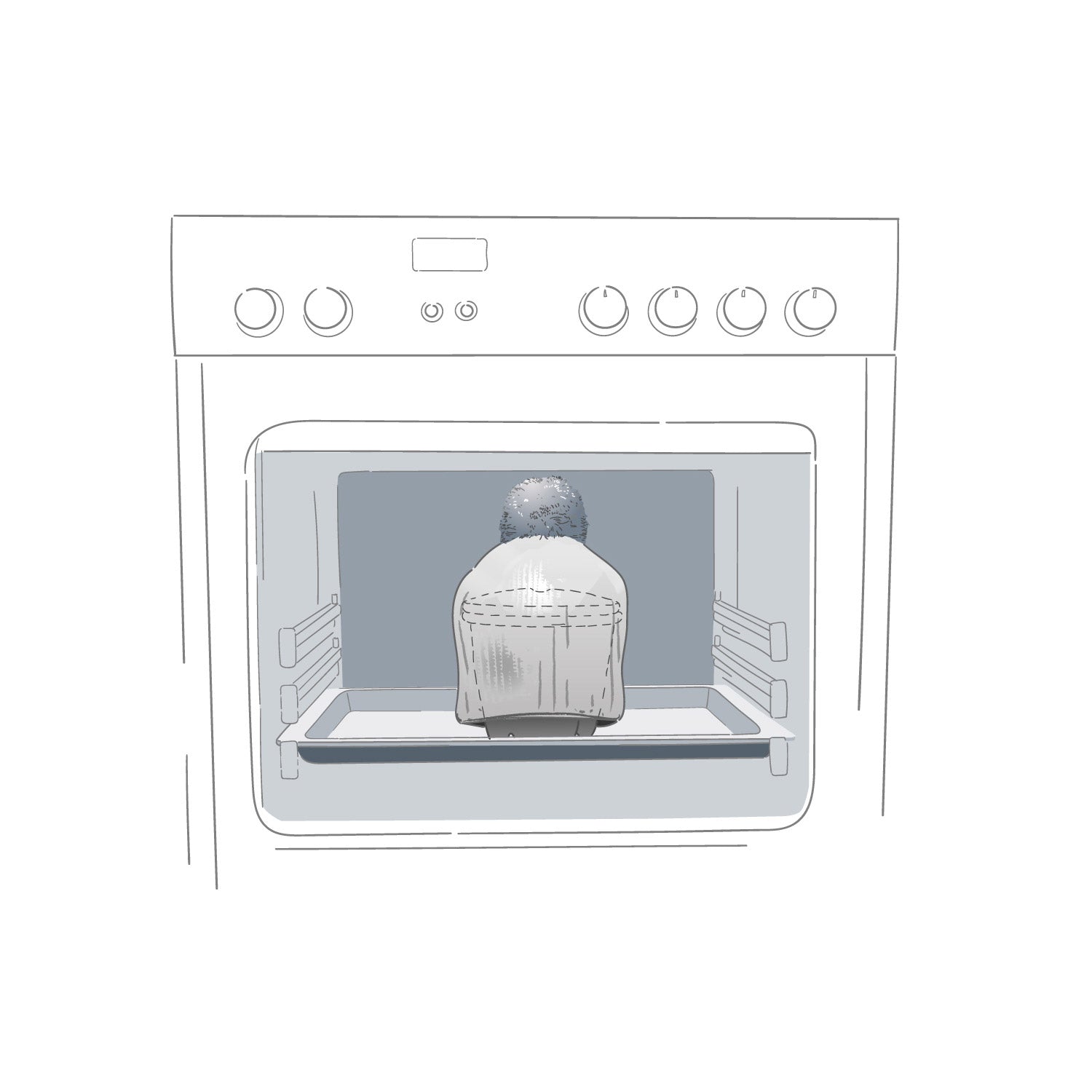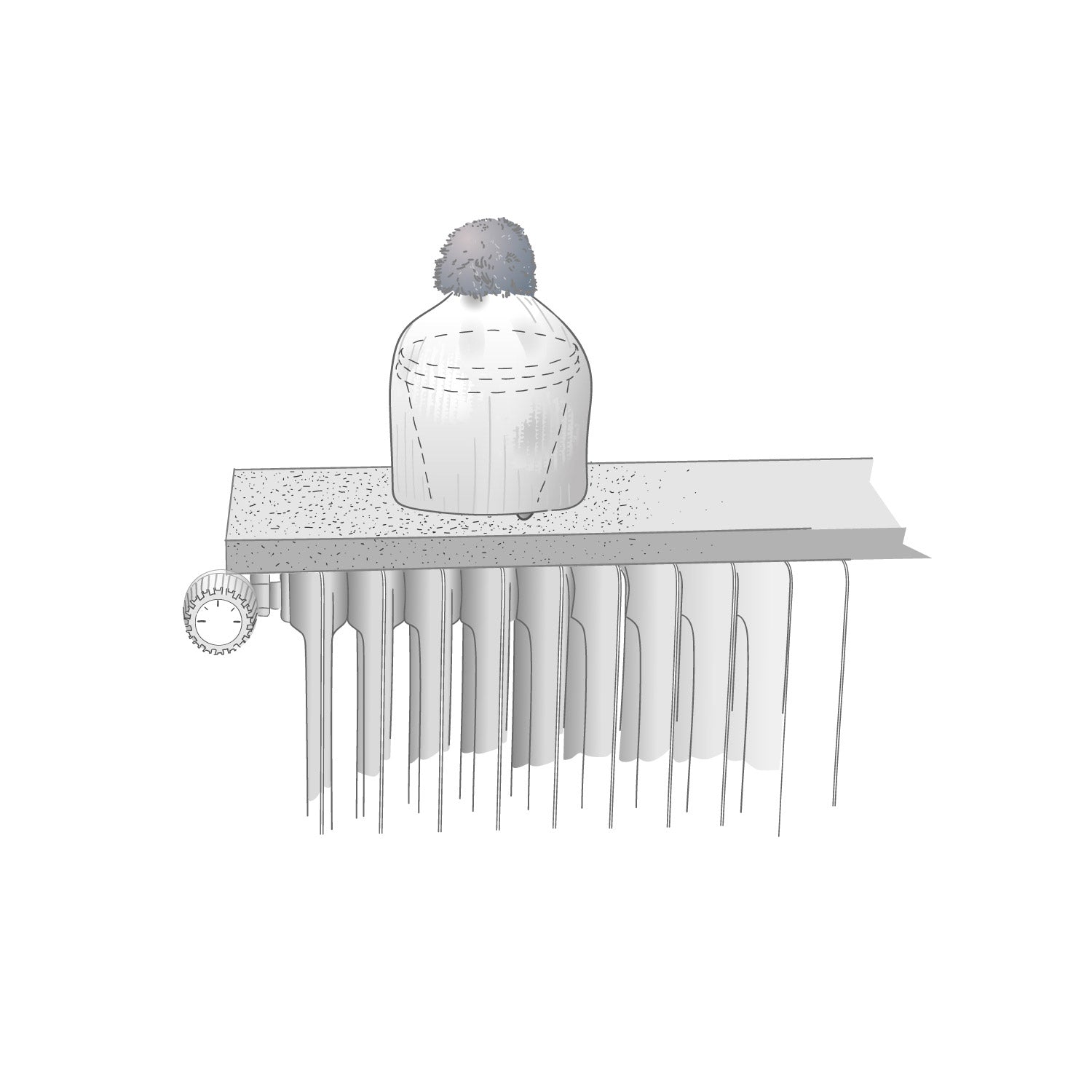 - Die gestrickte Wärmehaube wird darüber gezogen.