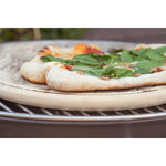 Die Pizzaplatte von Denk Keramik für Backofen und Kugelgrill. Sie hat einen Durchmesser von 34 cm, eine Höhe von 2 cm und wiegt ca. 3 kg.