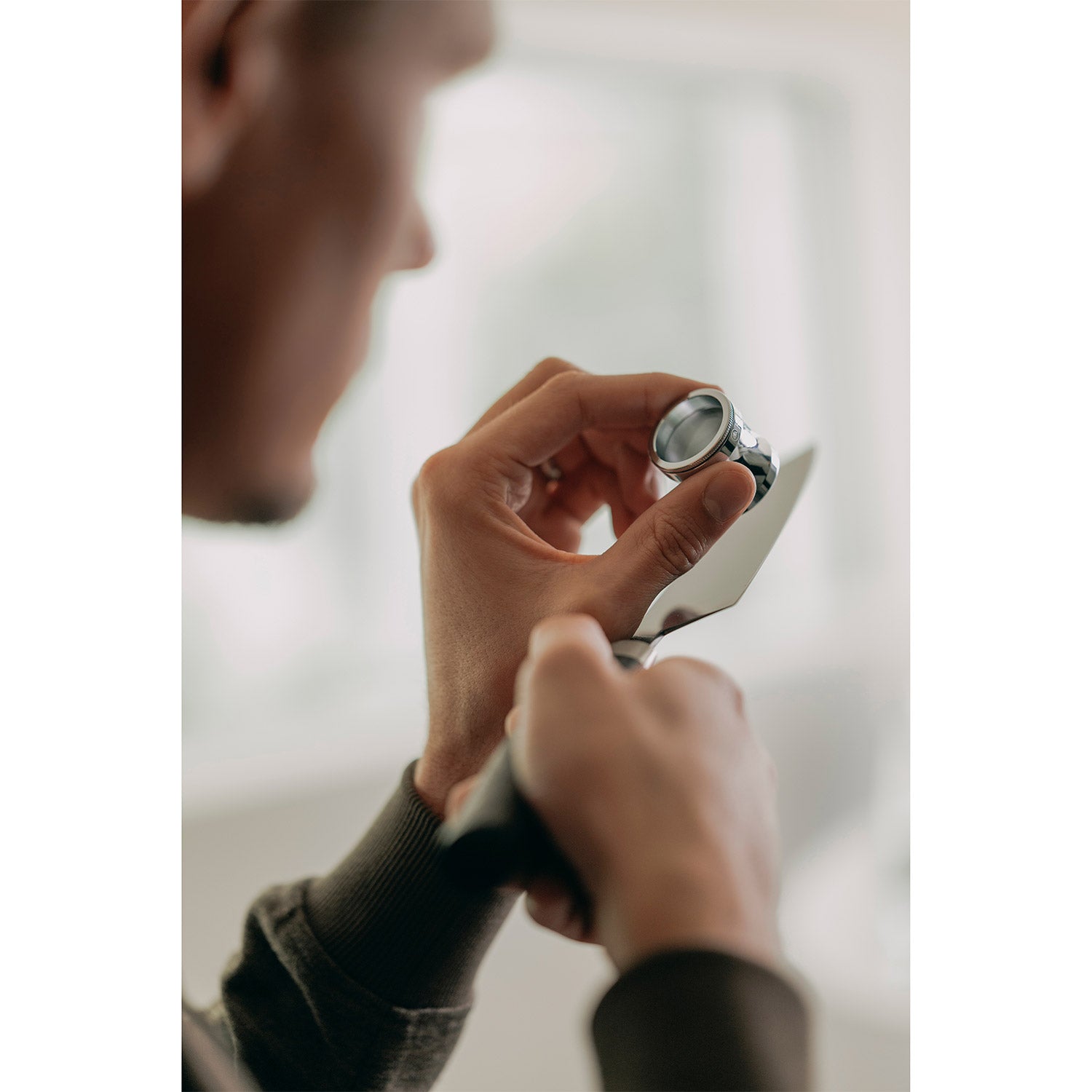 Damit Schärfe nicht nur spür-, sondern auch sichtbar wird, wurde die HORL® Lupe entwickelt. Im Schwarzwald gefertigt, bietet die HORL® Lupe eine 3,5-fache Vergrößerung. Eine Detailtiefe, die perfekt dazu geeignet ist, das Schliffbild zu begutachten. Ob noch ein Grat vorhanden ist oder das optimale Schärfeergebnis erreicht ist, kann so einfacher beurteilt werden. Für alle, die gerne genauer hinschauen.