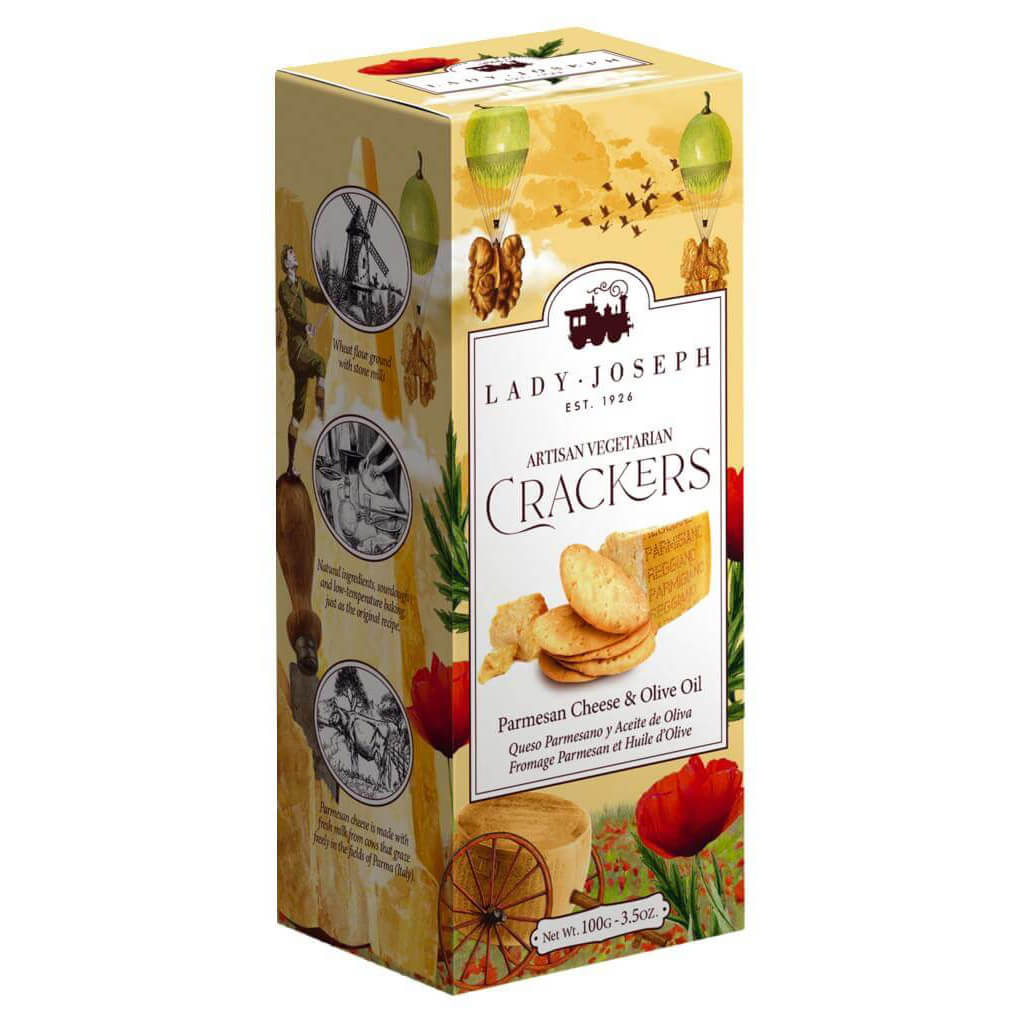 Entdecken Sie Lady Josephs Parmesan Cheese & Olive Oil Cracker: Knusprige Cracker mit dem einzigartigen Geschmack von Parmesan und der feinen Note von Olivenöl.