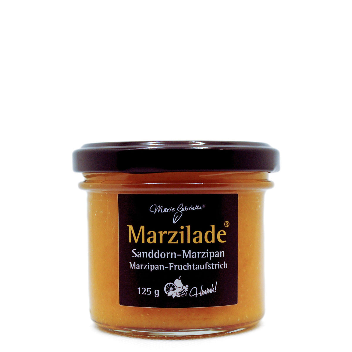 Sanddorn-Marzilade® im 125 g Glas ist Geniessen mit allen Sinnen und überzeugt durch den leckeren Sanddorn-und zugleich milden Marzipangeschmack. Sanddorn nennt man auch die Zitrone des Nordens. Wem der Geschmack von Sanddorn bisher zu intensiv und säuerlich war, sollte unbedingt die Marzilade® probieren. Das hochwertige lübecker Marzipan macht aus der Komposition ein weiches und mildes unwiderstehliches Geschmackserlebnis.