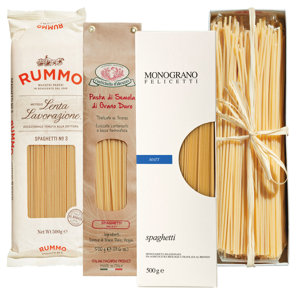 Mit diesem Spaghetti Probierpaket werden Sie sicher Ihren neuen Liebling finden. Vier unserer beliebtesten Hartweizen Spaghetti in einem einmaligen Set. Alle werden ganz klassisch durch Bronzescheiben gezogen und lange getrocknet. So entstehen rauhe Oberflächen, die Saucen sehr gut aufnehmen. Und das schmeckt man!