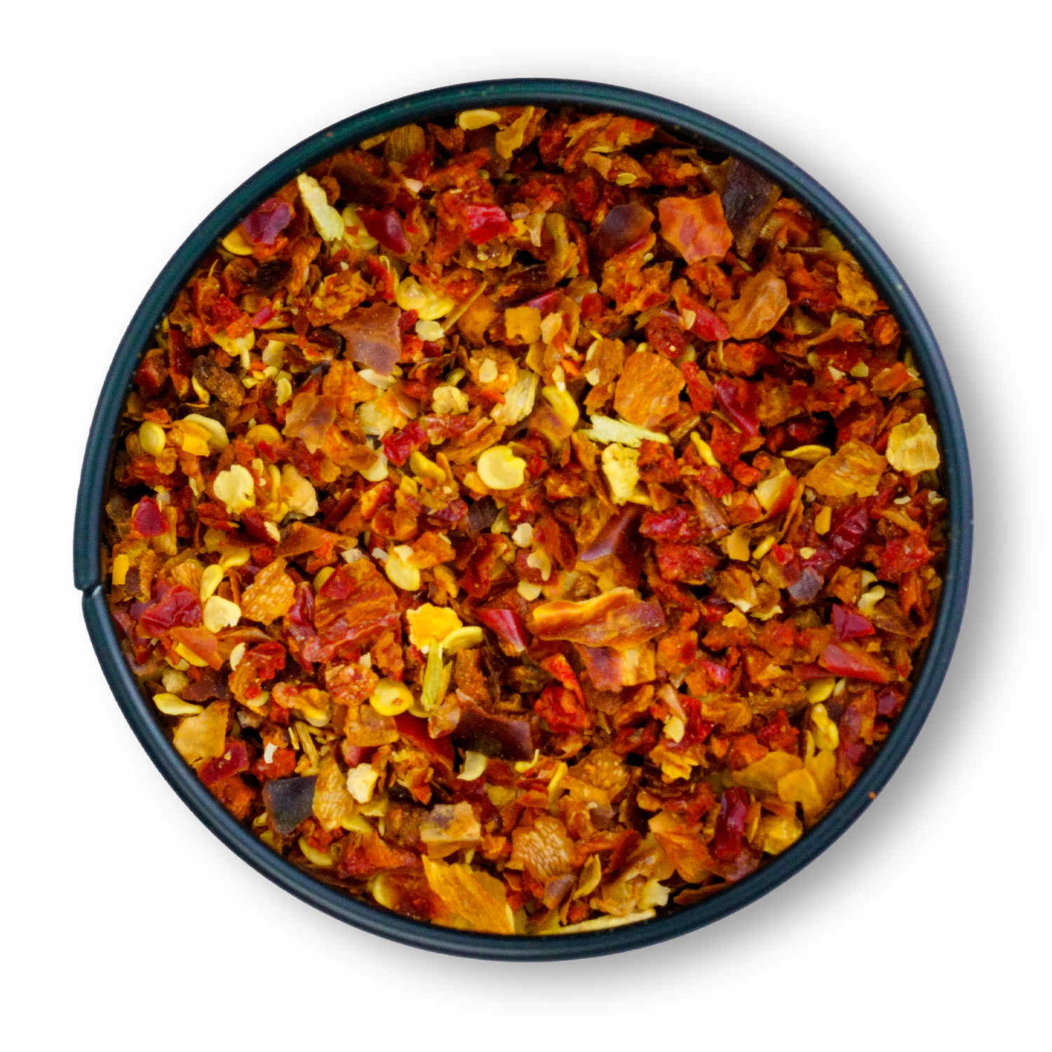 Die Bio Chiliflocken bei Rimoco bestehen aus getrockneten Chilis, diese wurden ganz geschrotet. Das bedeutet, dass auch die Kerne Verwendung finden. Beim Würzen mit den Chiliflocken entsteht daher, anders als bei unseren Chili Pulvern, kein einheitlicher Schärfegrad. Stattdessen wird es schärfer, wenn Du auf Kerne bzw. Plazenta beißt und fruchtiger, wenn Du Chiliflocken aus Fruchtfleisch erwischst. Durch den Verzicht auf das Mahlen und die so erhaltene körnige Textur verleiht das Gewürz deinen Speisen Geschmack und Konsistenz in einem.