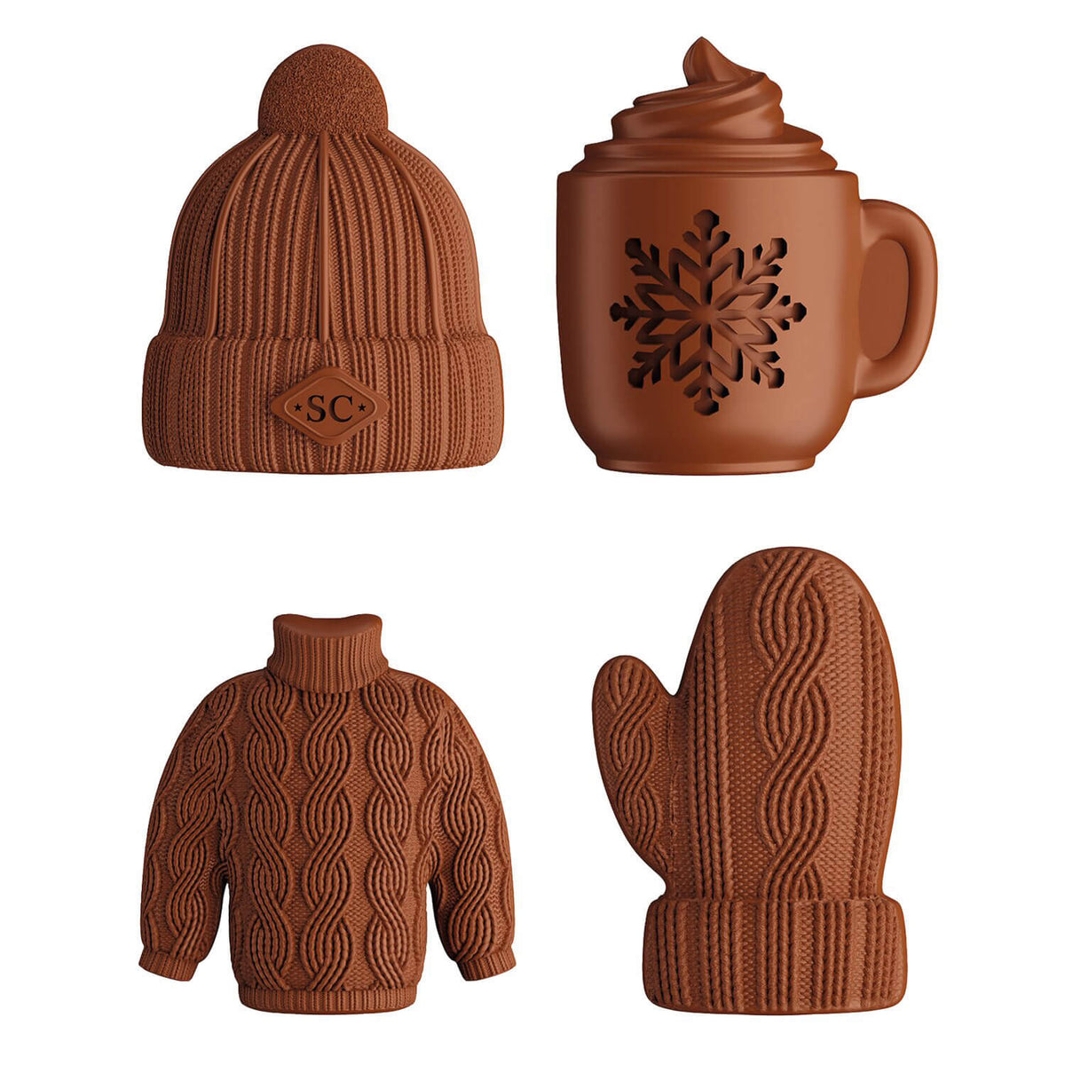 Adventskalender mit 24 Türchen von Simon Coll. Elf verschiedene weihnachtliche Motive aus Vollmilch füllen diesen attraktiven Kalender. Die kleinen Figuren sind hohl und zeigen beispielsweise Sterne, Weihnachtsbäume und Lebkuchenmännchen. Der Kalender kann ganz einfach an die Wand gehängt werden und schmückt dann mit seinem Bild vom vereisten See und Schlittschuhläufern das Zimmer.