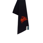 Die schwarzen Küchentücher mit diamantenem Webmuster bestehen aus 100% Baumwolle-Jacquard. Sie werden in Handarbeit mit einem Motiv einer Krabbe in einem kleinen Familienbetrieb im Norden von Portugal bestickt. Sie sind außerdem Waschmaschinen- und Bügelfest