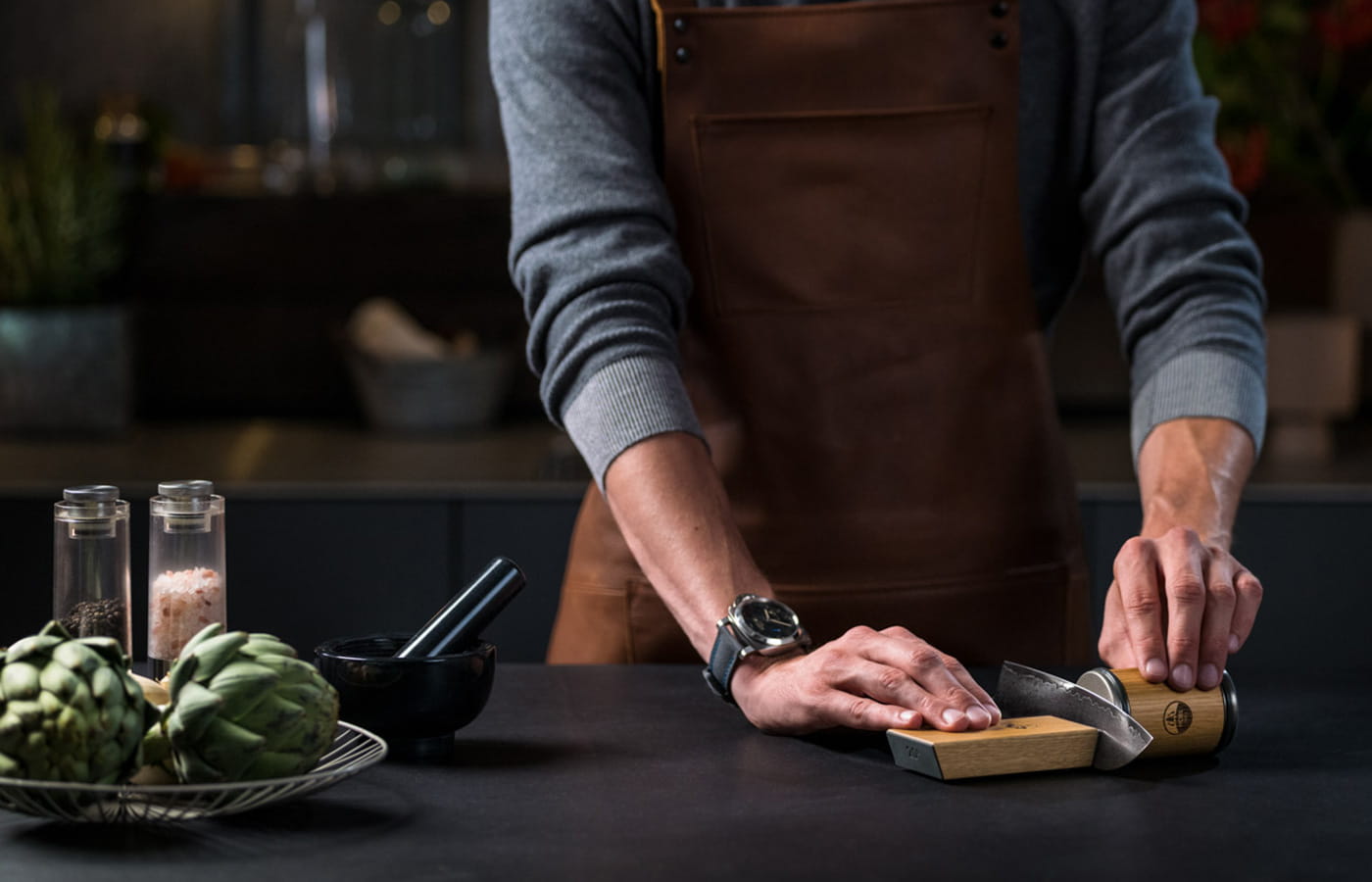Unser Herz schlägt für kulinarische Hochgenüsse und feinste Spezialitäten. Für deren Herstellung wird Liebe, Erfahrung und Leidenschaft gebraucht - und natürlich eine gute Ausstattung. Dazu gehören unbedingt scharfe Messer. Die Klingen können mit der Zeit jedoch stumpf werden, sodass die Freude an der Zubereitung sinkt. Ein wichtiges Thema in der Kulinarik ist deswegen die Wiederherstellung der Klingenschärfe. In dieser Anleitung zeigen wir, wie es Ihnen ganz einfach und mit verschiedenen Werkzeugen gelingt, Ihre Messer wieder richtig scharf zu schleifen.