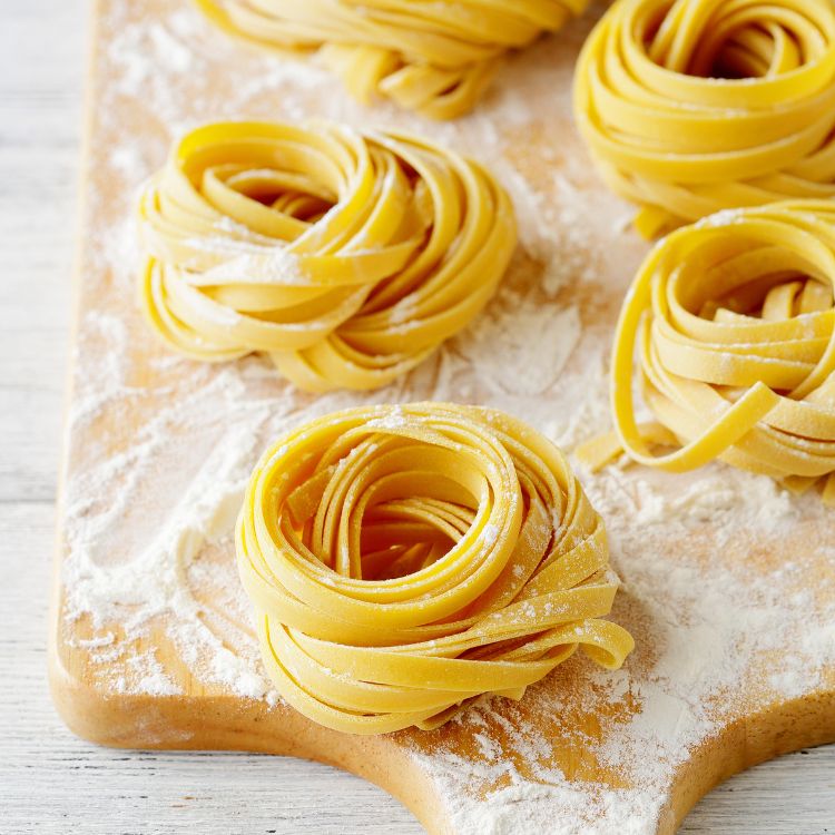 Lange, flache Bandnudeln, die vor allem für herzhafte Saucen wie Ragù alla Bolognese ideal sind. Die Textur und Breite der Tagliatelle machen sie zur perfekten Wahl für gehaltvolle Gerichte.