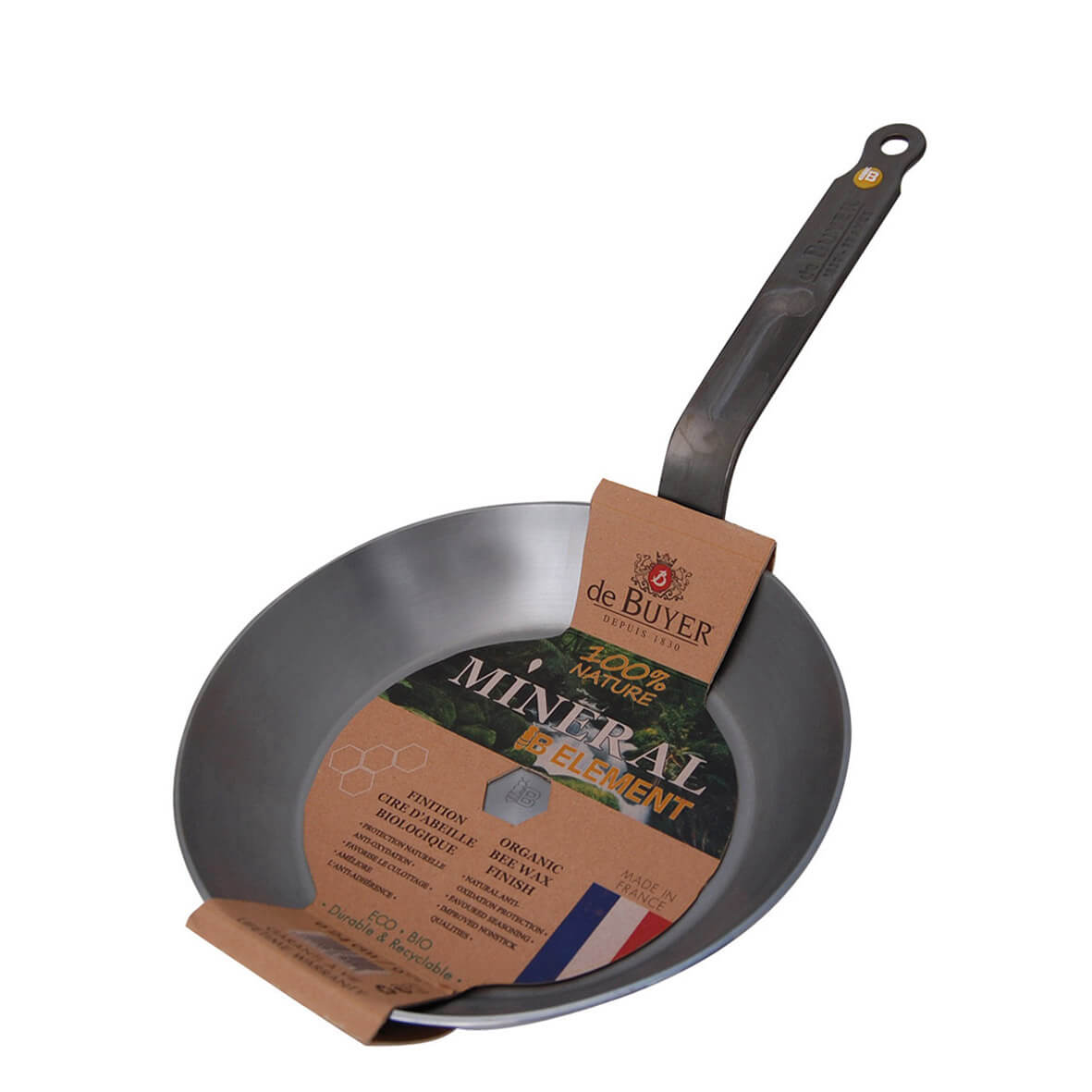 Mit unserem 2er De Buyer Pfannen Set Mineral B Element aus Eisen Ø 24+28 cm werden Sie die Welt des authentischen Kochens neu kennenlernen. Die 24 cm & 28 cm Eisenpfannen sind Meisterwerke der Handwerkskunst und bieten eine überragende Funktionalität. Hergestellt aus schwerem und unbeschichtetem 100% Eisen sind sie bestens gerüstet für große Hitze. Bratgut lässt sich scharf anbraten und schön karamellisieren. Somit empfehlen sich die De Buyer Eisenpfannen für Steaks, gegrilltes Fleisch, Bratkartoffeln, aber auch für Omelettes sowie Pfannkuchen.