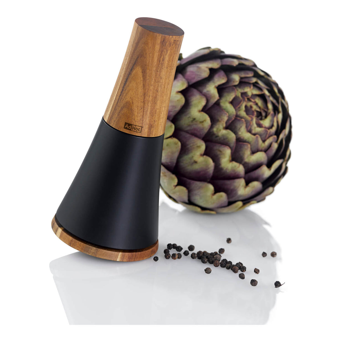 Produktinfos für AdHoc Getriebemühle PowerMill für Pfeffer / Salz mit Ceramic Mahlwerk CeraCutXL® aus Akazienholz & Edelstahl, 20 cm, schwarz