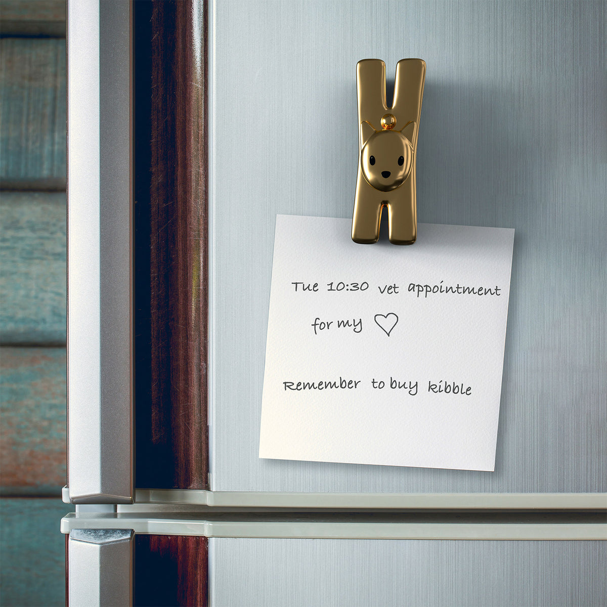 Man braucht immer etwas, das einen an die wichtigen Dinge erinnert: die wie ein Katze geformten Klammern Lampo in rot kommen hier zur Hilfe. Das sind magnetische Klammern, die sich ideal zum Anbringen von Memos und Notizen oder zum Verschließen von Beuteln eignen.