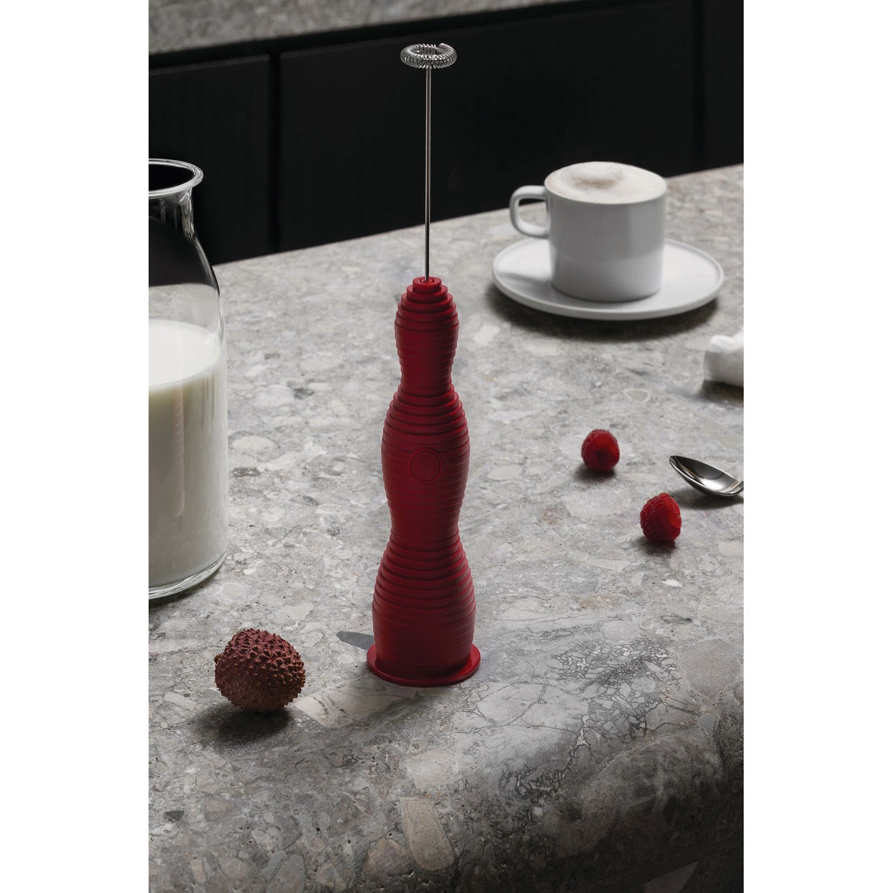 Ein kleines Totem für den Haushalt: Der Milchaufschäumer Pulcina in rot verbindet Handlichkeit und Funktionalität mit einem Design von sanfter, beruhigender Geometrie, das jede Wohnlandschaft bereichern wird. Für alle Design-Liebhaber, die auf einen guten, selbstgemachten Cappuccino nicht verzichten können. Und für alle Cappuccino-Liebhaber, die auf gutes Design nicht verzichten wollen. Er lässt sich mit dem mitgeliefertem USB Kabel problemlos wieder aufladen. Der Milchaufschäumer hat die Maße 27,5 x 5 x 4 cm.
