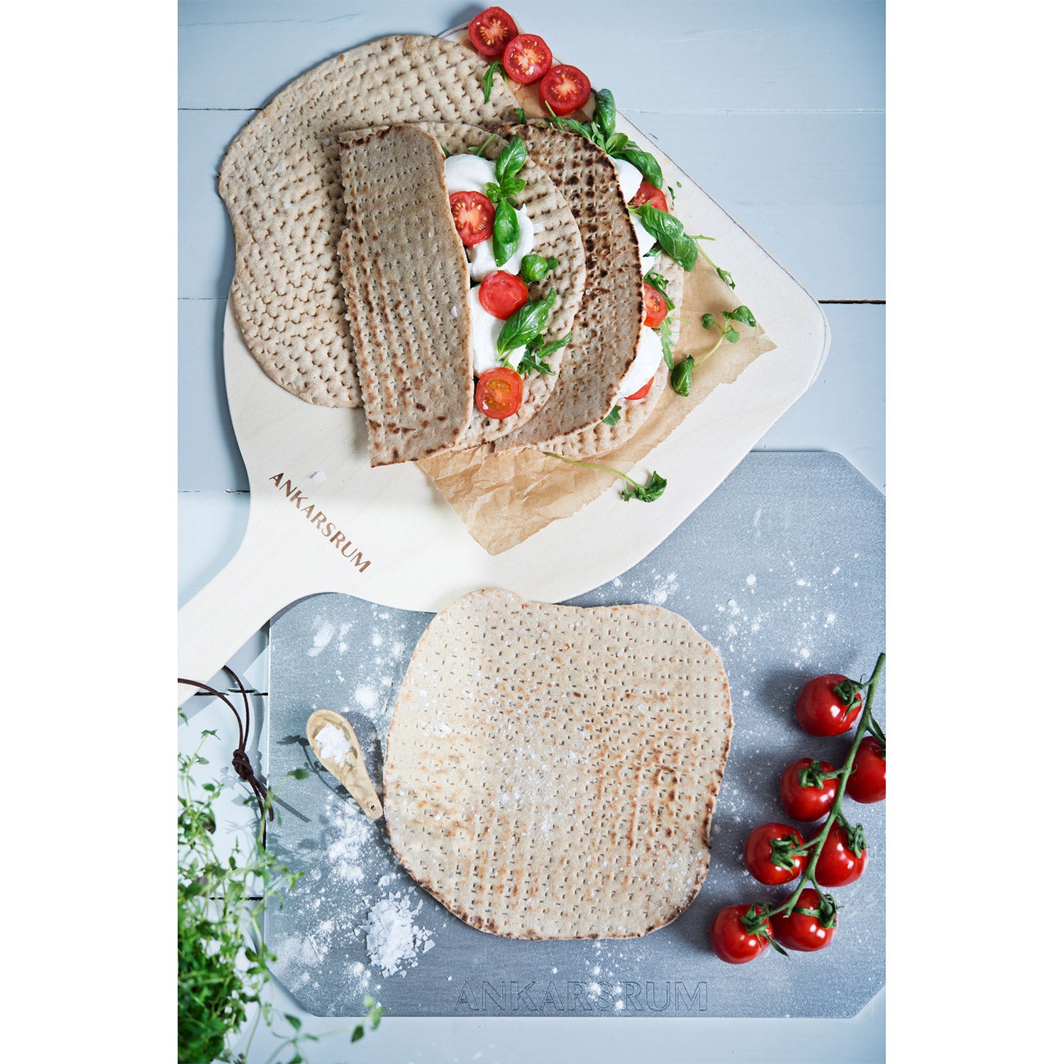 Ankarsrum hat einen schwedischen Backstahl für Pizza und Brot entwickelt. Der Stahl wurde aus dem Erzvorkommen rund um die Stadt Kiruna gesammelt und in Västerbotten verarbeitet und veredelt. Mit diesem Backstahl wird das Backen in der heimischen Küche zum Grill- und Backerlebnis. Der Backstahl kann nicht nur in einem normalen Backofen, sondern auch auf dem Grill verwendet werden. Der Backstahl hat die Größe 37 x 32,5 cm. Im Lieferumfang ist ein Schieber aus Holz mit den Maßen 22 x 29 cm (Maße bis zum Schriftzug) enthalten.