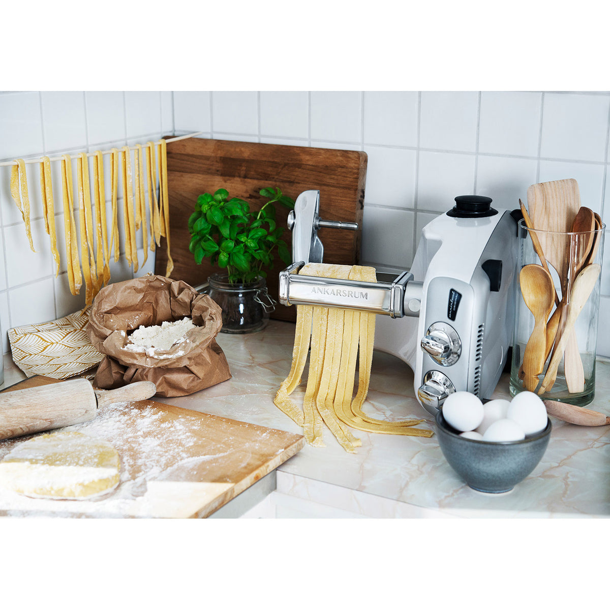 Die Lasagnettewalze von Ankarsrum macht 10 mm breite Nudeln. Selbstgemachte Nudeln servieren, das macht bei jedem Essen einen guten Eindruck. Der Geschmack und die Konsistenz sind ein wundervolles Erlebnis für den Gaumen – und sie sind viel einfacher zu machen als Sie denken!