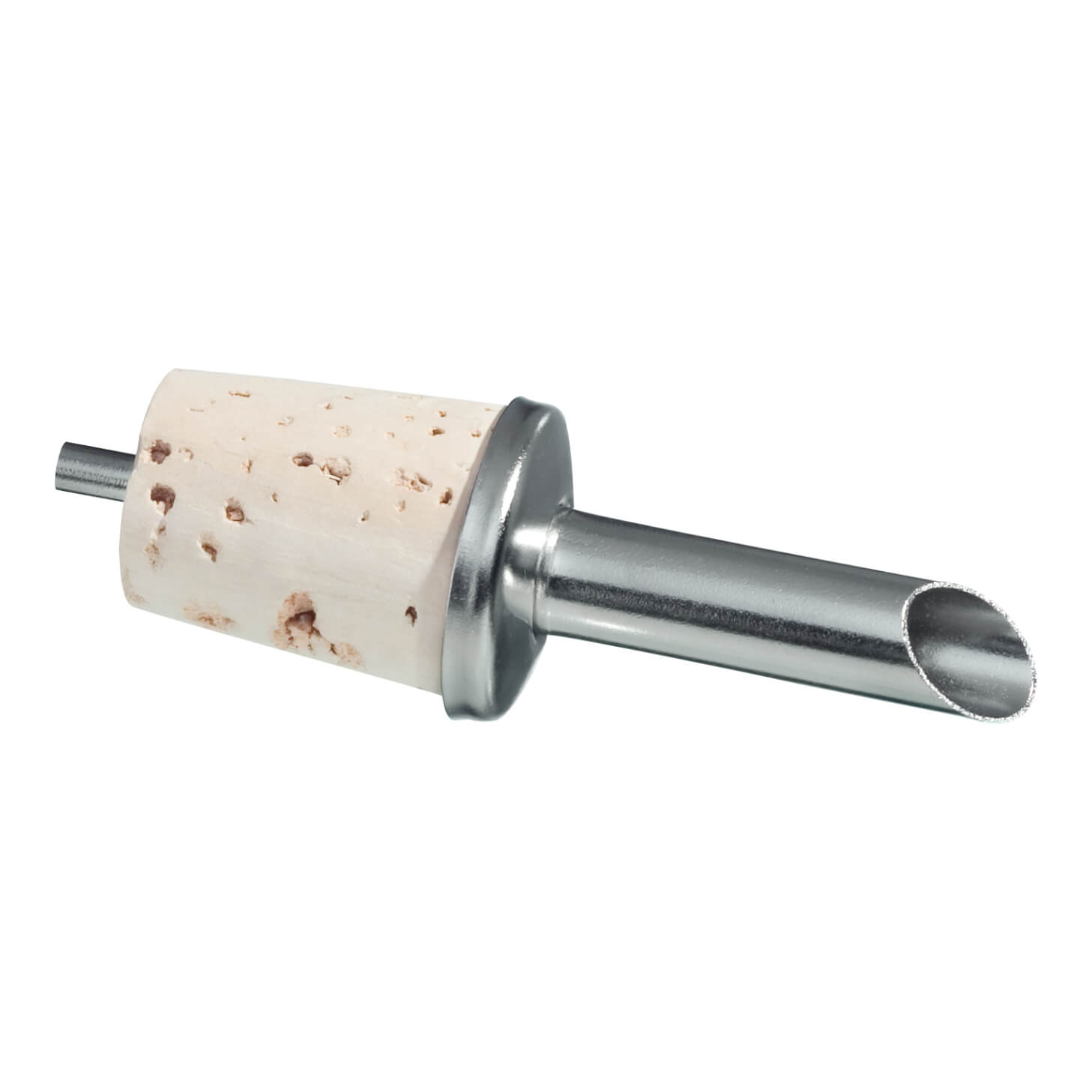 Ein schöner Ausgießer aus rostfreiem Edelstahl und Kork für Essig und Öl. Mit diesem Aufsatz lassen sich die edlen Produkte tropffrei und genau dosieren.