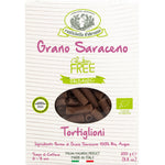 Die Bio Tortiglioni Buchweizenmehlnudeln von Rustichella bieten eine glutenfreie Variante der Nudeln an. Anders als sein Name vermuten lässt, ist der Buchweizen kein Getreide, sondern eine einjährige krautige Pflanze aus der Familie der Polygonaceae. Es gibt zwei Hypothesen über den Ursprung des Namens: Die erste führt ihn auf die dunkle Hautfarbe der Sarazenen zurück, die zweite darauf, dass er von den Sarazenen in Italien verbreitet wurde. Es unterscheidet sich von gewöhnlichem Getreide durch den hohen biologischen Wert seiner Proteine, die die acht essentiellen Aminosäuren in einem optimalen Verhältnis enthalten. Mit ihren remineralisierenden und energetisierenden Eigenschaften, da sie einen hohen Gehalt an Magnesium und Mangan aufweisen, sind Tortiglioni auch eine schmackhafte Alternative zu einem Gourmet-Nudelgericht.