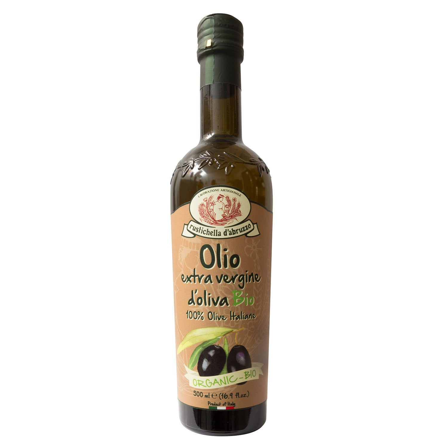 Rustichella d Abruzzo bringt sein Natives Olivenöl Extra Bio mit Inhaltsmenge 500 ml auf den Tisch. Es ist ein Öl mit geringem Säuregehalt und einem leicht fruchtigen Geschmack mit würzigen Noten. Die Technik der Olivenernte durch "manuelles Brennen" und das sofortige Mahlen auf Steinen ermöglichen es, sowohl die Sicherung der jahrhundertealten Olivenhaine als auch die hervorragende Qualität der Oliven zu bewahren.