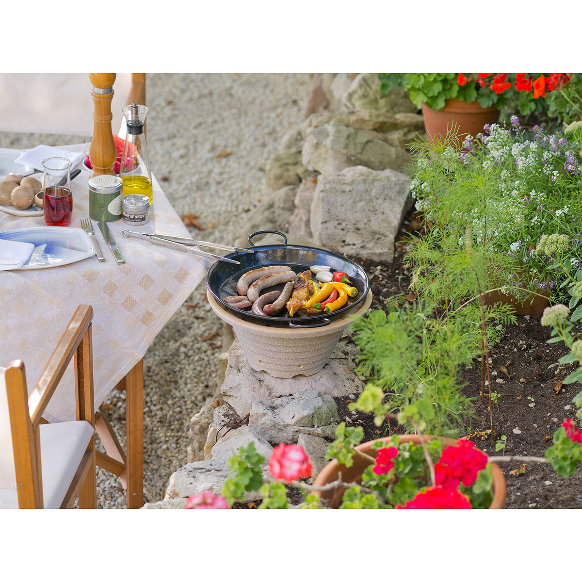 Bleiben Sie gesundheitsbewusst! Bei der Zubereitung auf dem Bratfeuer haben Fleisch und Wurst keinen direkten Feuerkontakt. Trotzdem breitet sich ein köstlicher Grillduft aus. Mit Ihrem Bratfeuer zaubern Sie noch viel mehr auf den Tisch. In der emaillierten Pfanne gelingen Ihnen Forelle & Co. Ebenso gut wie Gemüse, Paella oder Pfannkuchen.
