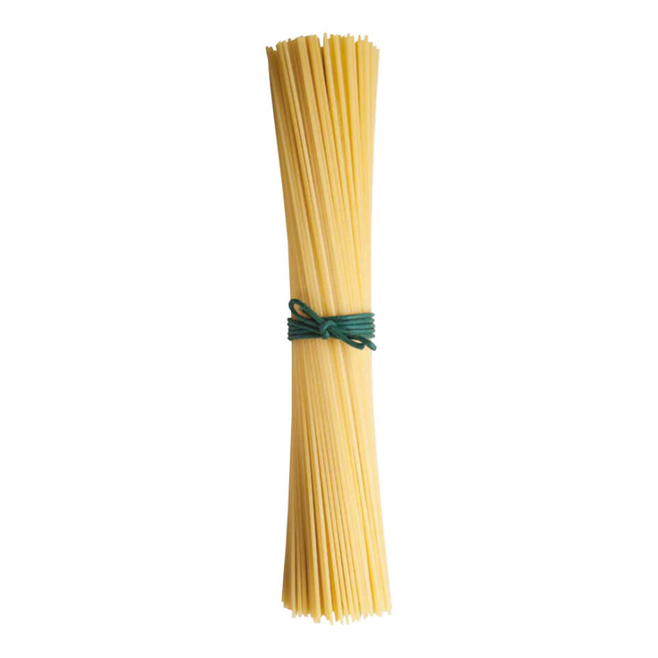 Die dünnen Spaghetti mit einem Durchmesser von 0,85 bis 0,92 mm gehören zu den beliebtesten der Rustichella dAbruzzo und passen gut zu einer Brühe oder Suppe, können aber auch mit einer Sauce aus Öl, Ingwer, Zitronenschale und Sichuan-Pfeffer angebraten oder einfach mit frischer Tomatensauce und Basilikum angemacht werden.
