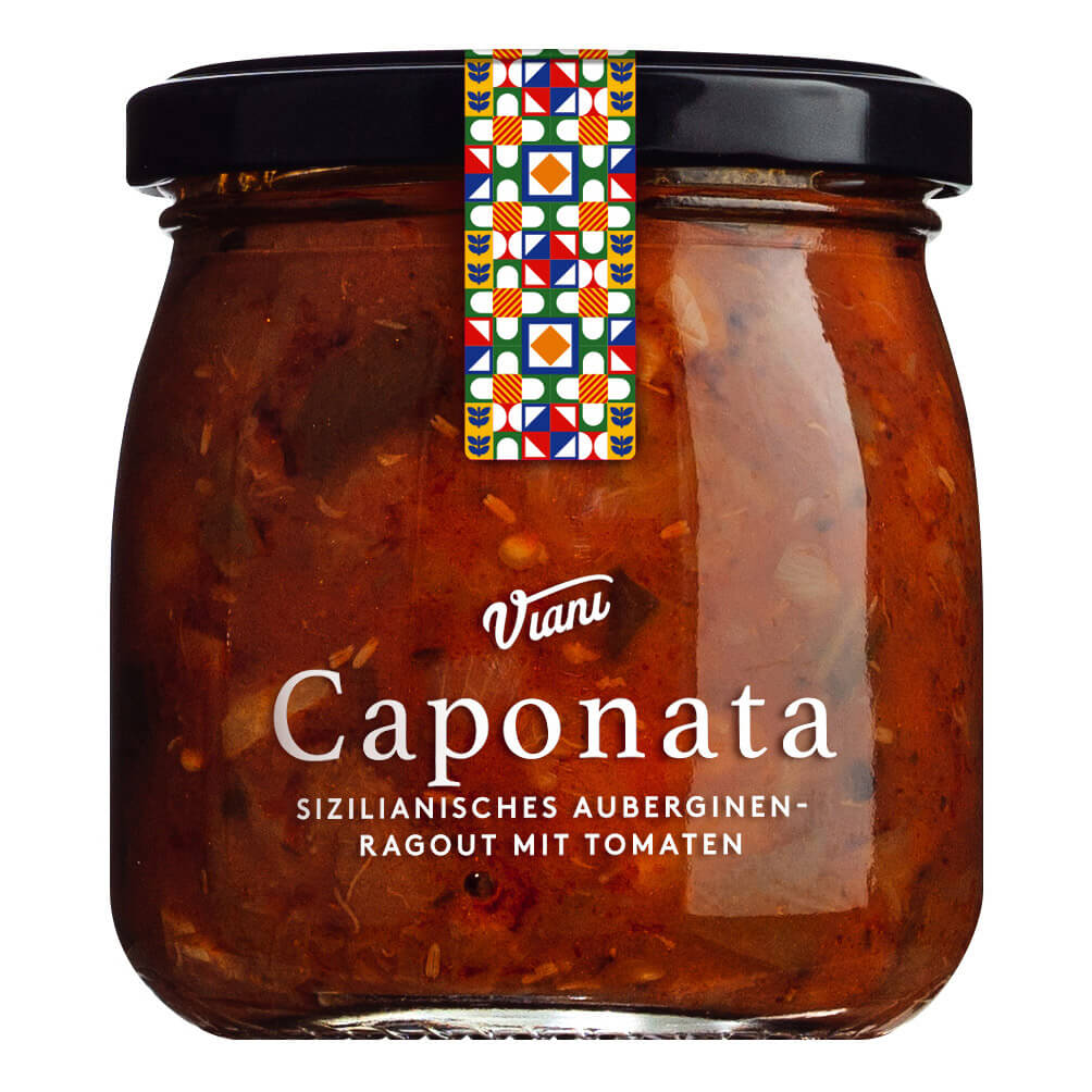 Der authentische Geschmack Siziliens mit der Caponata di Melanzane von Viani. Dieses sizilianische Auberginen-Ragout, hergestellt in der traditionsreichen Hafenstadt Catania, kombiniert perfekt die Süße von Zucker und die Säure von Essig. Mit Auberginen, Tomaten, Kapern, Oliven, Karotten und dem harmonischen Olivenöl von Cutrera ist es ein idealer Begleiter zu Bruschetta, gegrilltem Fisch und Fleisch.