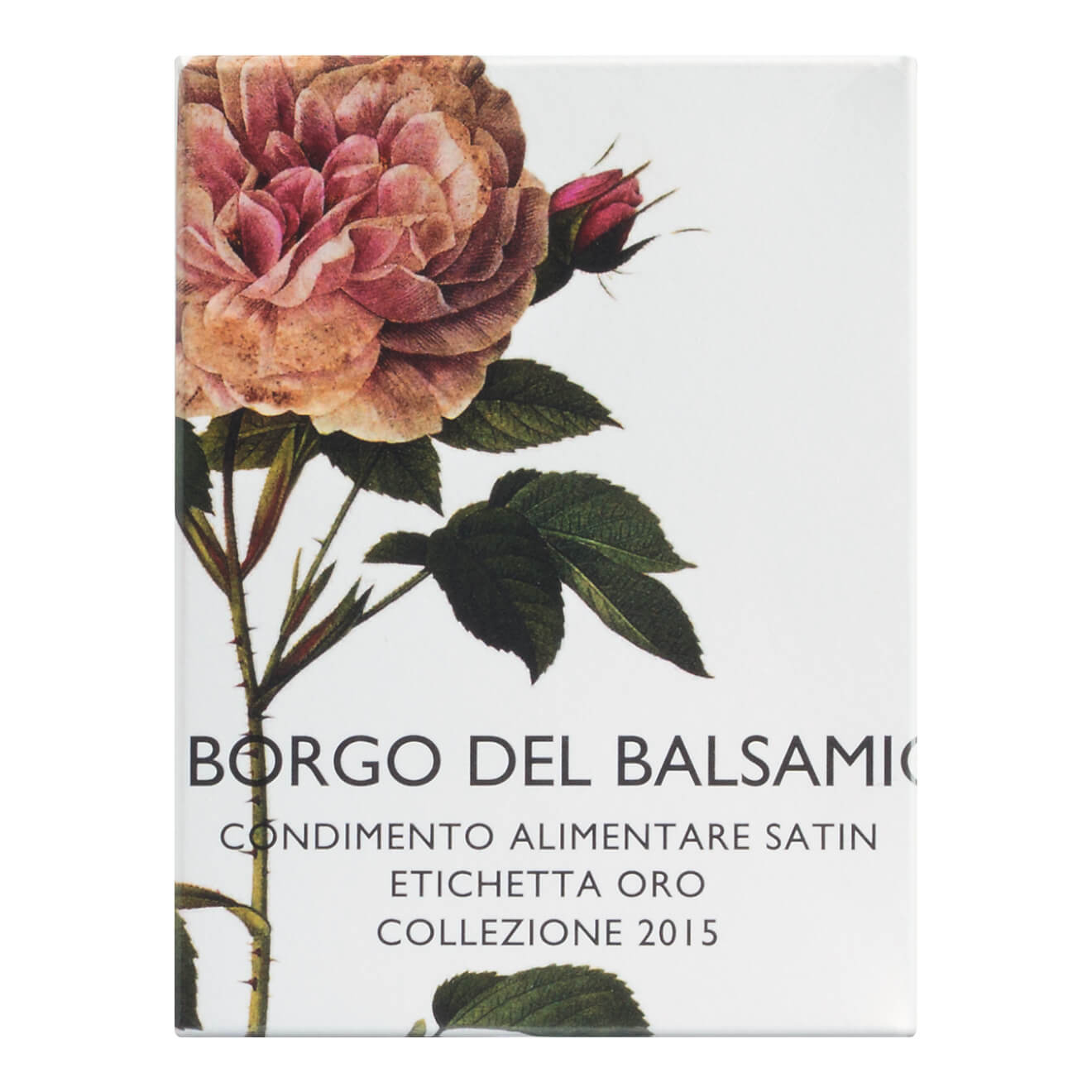 5 Jahre reifte dieses Condimento in kleinen Eichenfässern. Seine annähernd cremige Konsistenz und animierende Süße machen ihn zu einem exklusiven Würzmittel, das insbesondere zu Desserts wie Obst, Eiscreme und Panna cotta schmeckt. Der Satin steckt in einer sehr charmanten Verpackung mit einer romantischen Rosenzeichnung als Zierde.