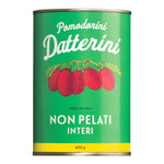 Kleine, aromatisch-süße Datteltomaten sind in Tomatensaft konserviert. Ihre feine Fruchtigkeit und Süße eignen sich für elegante Tomatensughi mit anderen zarteren Zutaten wie Garnelen oder Gemüse.