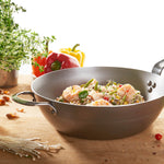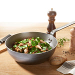 Bauernpfanne Durchmesser 24 cm für verschiedene Kochstile: anbraten, sautieren, bräunen, kochen... Perfekt für die Zubereitung großer Mengen oder zum Anbraten von Kartoffeln. Die hohen Ränder begrenzen den Überstand beim Garen von Fleisch.