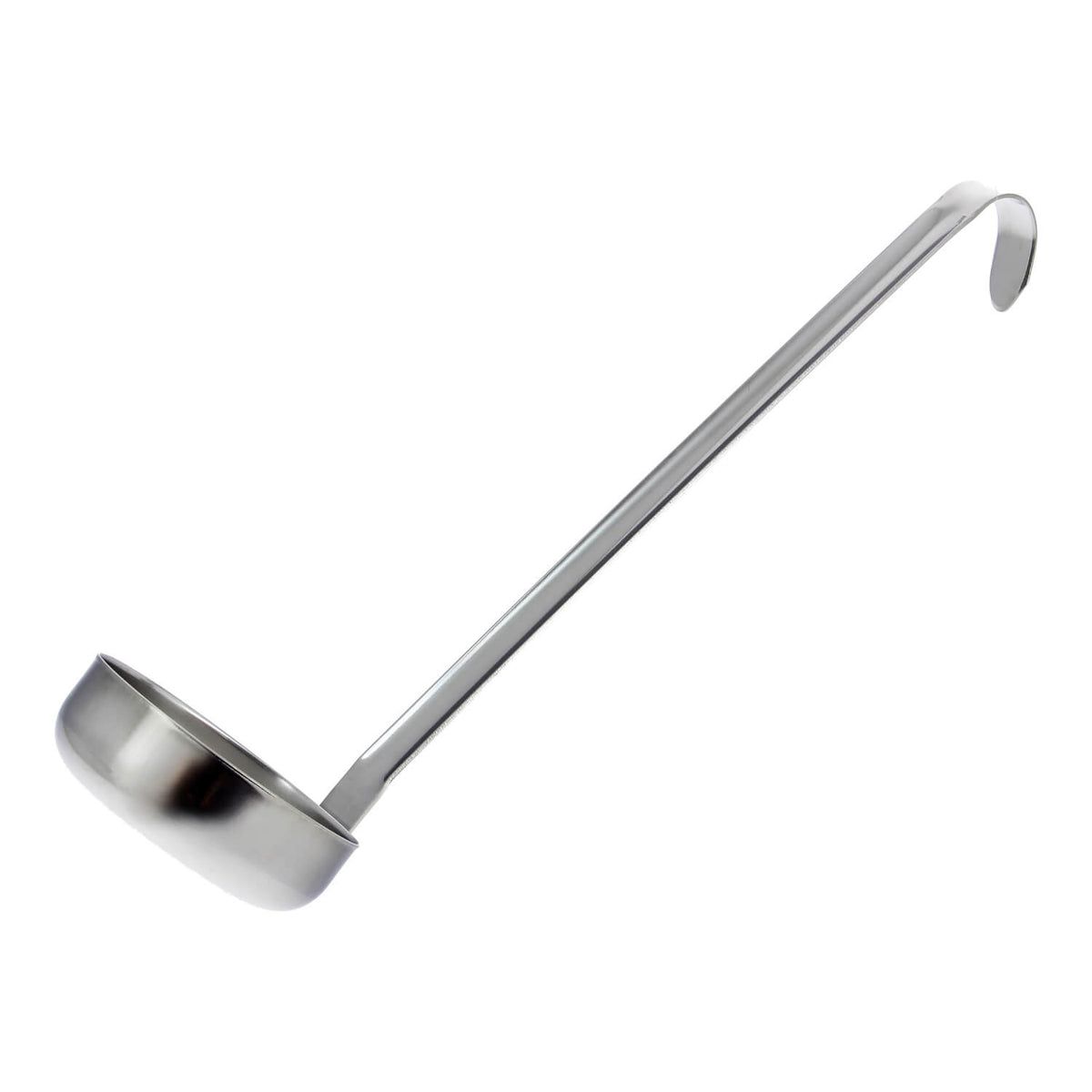 Pizza - Schopflöffel aus Edelstahl, ideal zum Bestreichen von Tomatensauce auf Pizzen. 145 ml Fassungsvermögen: entspricht der Standardmenge an Tomatensauce, die für die Zubereitung einer Pizza mit einem Durchmesser von 31 cm benötigt wird. So ist es einfach, die richtige Menge an Tomatensauce zu dosieren und somit Überschüsse und Abfälle zu vermeiden.