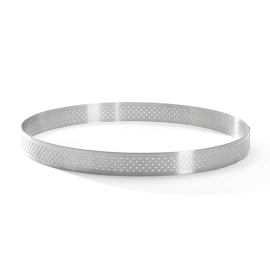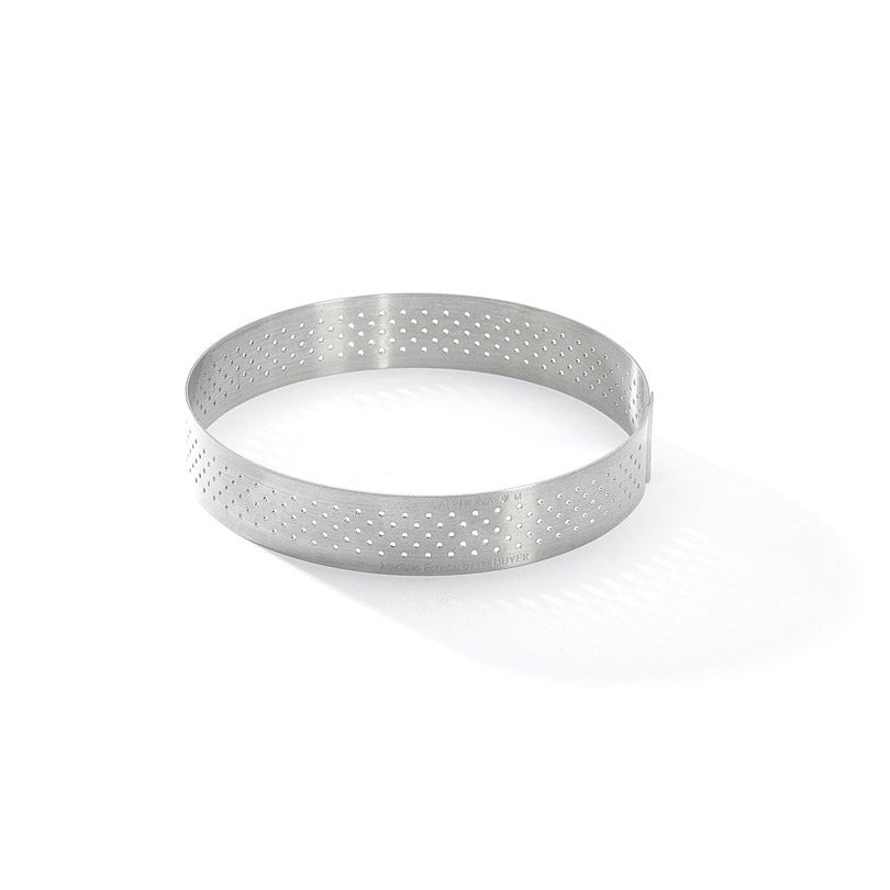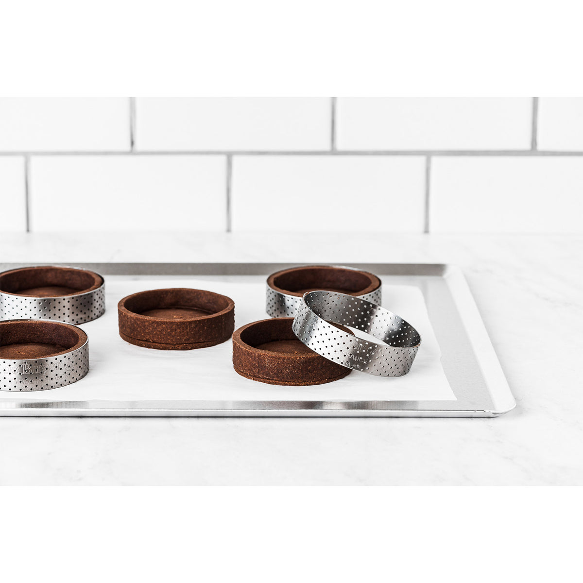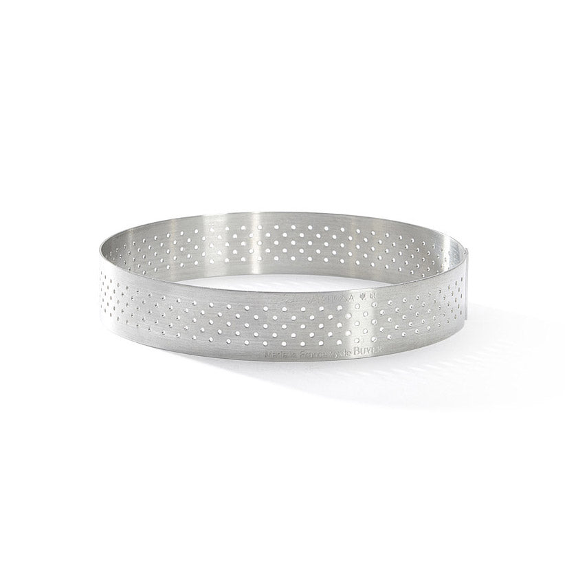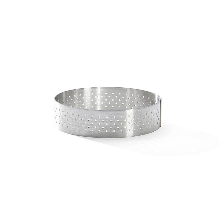 Der runde runde gelochte Tortenring von De Buyer hat einen Durchmesser von 10,5 cm. Er ist aus Edelstahl gefertigt und ideal für Tartes, Tartelettes und Quiches. Der Ring wurde in Zusammenarbeit mit der Schule "Ecole du Grand Chocolat Valrhona" entwickelt. Perfekt zum Backen von Sandteig, Blätterteig oder Mürbeteig. Die Ringe sind für eine gleichmäßige Bräunung der Tarte-Ränder mit Löchern übersät. Die geraden Kanten ermöglichen eine makellose Oberfläche von Kleingebäck und Entremets sowie einfaches Ausformen. Geeignet für Kühlschrank, Tiefkühlschrank und Gefrierschrank. Kann im Backofen verwendet werden.