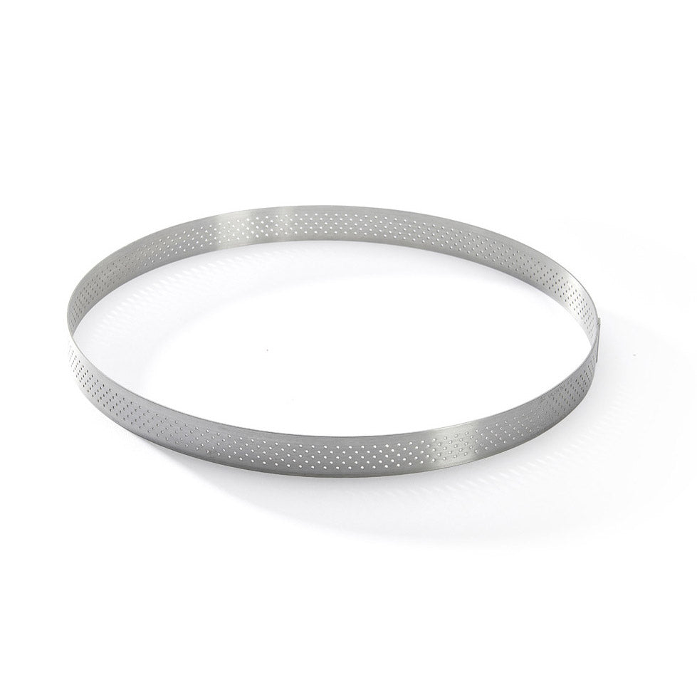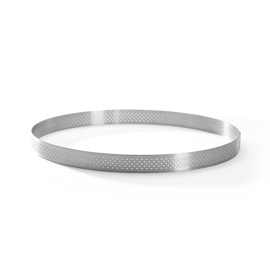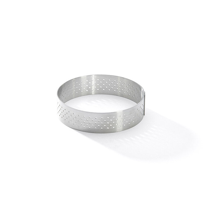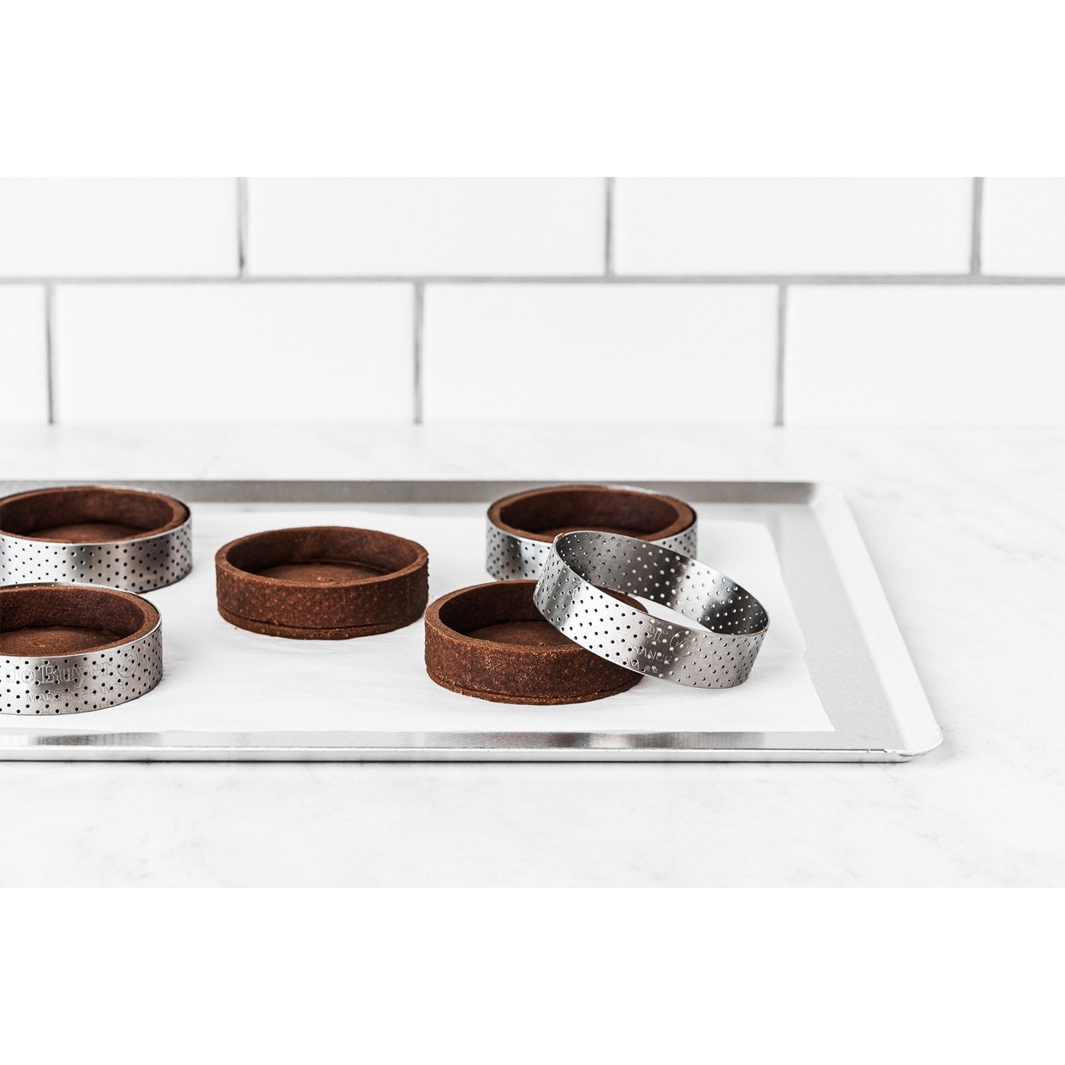 Der runde runde gelochte Tortenring von De Buyer hat einen Durchmesser von 10,5 cm. Er ist aus Edelstahl gefertigt und ideal für Tartes, Tartelettes und Quiches. Der Ring wurde in Zusammenarbeit mit der Schule "Ecole du Grand Chocolat Valrhona" entwickelt. Perfekt zum Backen von Sandteig, Blätterteig oder Mürbeteig. Die Ringe sind für eine gleichmäßige Bräunung der Tarte-Ränder mit Löchern übersät. Die geraden Kanten ermöglichen eine makellose Oberfläche von Kleingebäck und Entremets sowie einfaches Ausformen. Geeignet für Kühlschrank, Tiefkühlschrank und Gefrierschrank. Kann im Backofen verwendet werden.