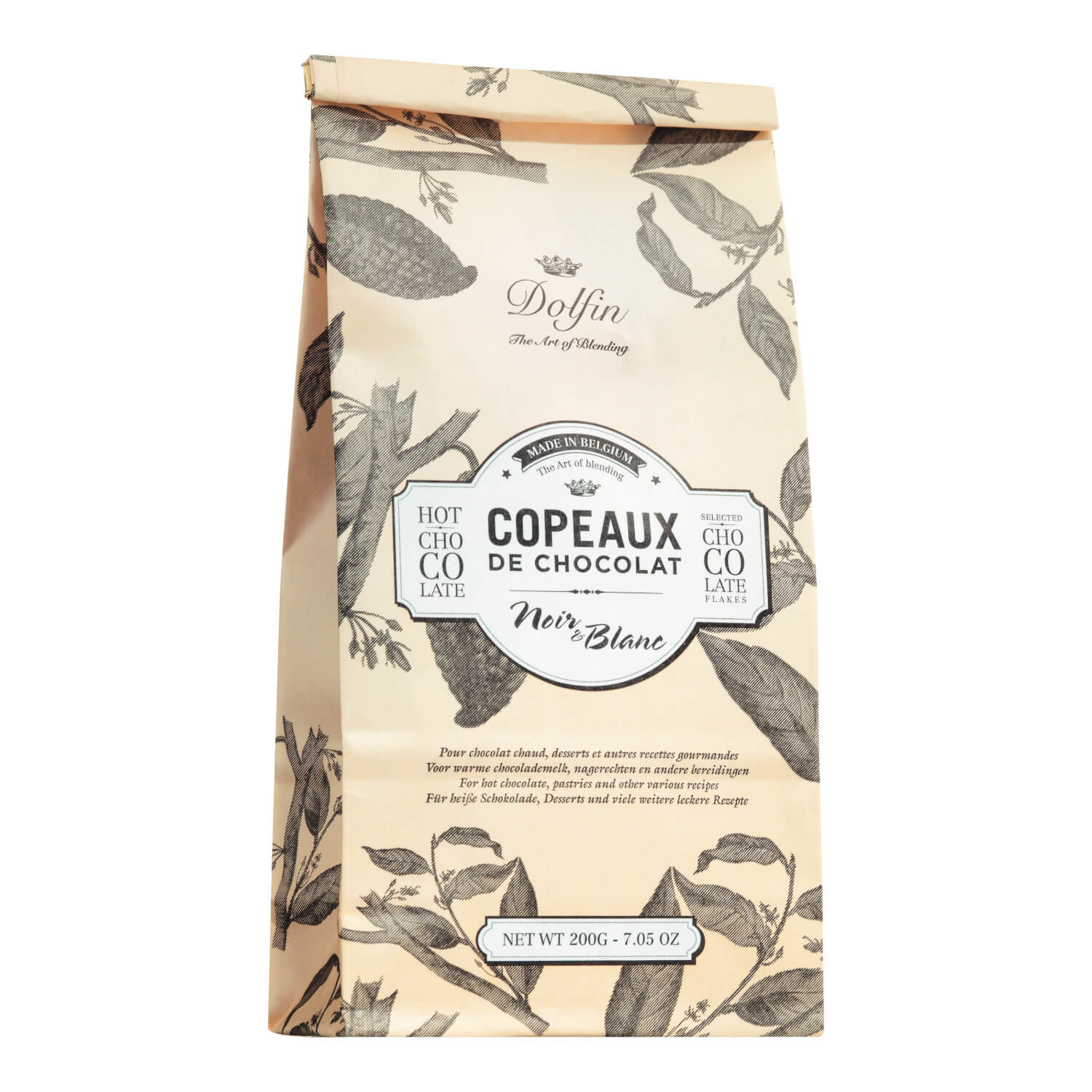 Dolfin Copeaux de Chocolat Trinkschokolade mit schwarz-weißen Flocken, 200 g