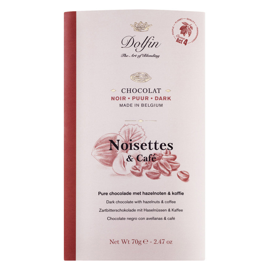 Dolfin Noisettes & Café Zartbitterschokolade mit Haselnüssen und Kaffee, 70 g