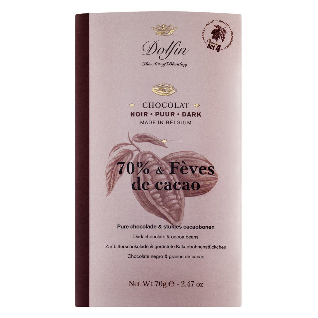 Dolfin Zartbitterschokolade mit 70% Kakaobohnen, 70 g