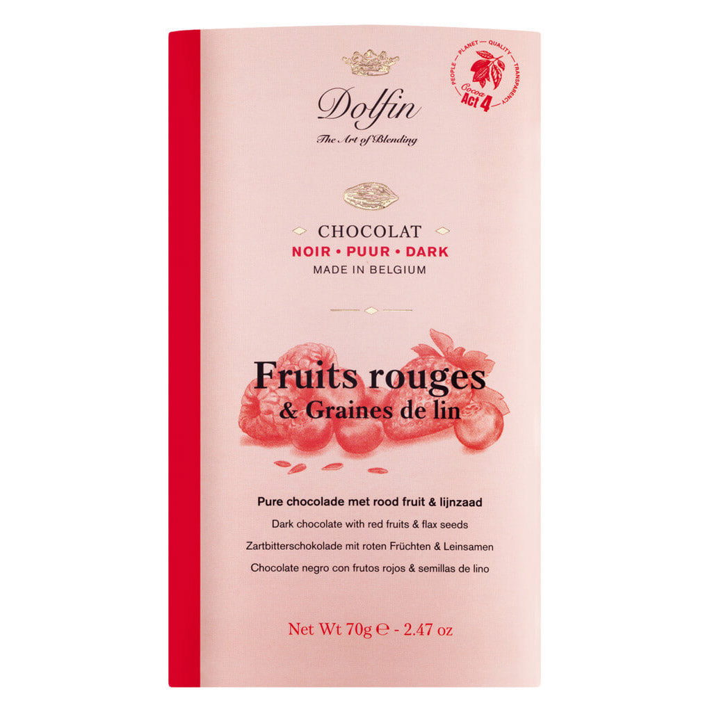 Dolfin Zartbitterschokolade mit roten Beeren & Leinsamen, 70 g