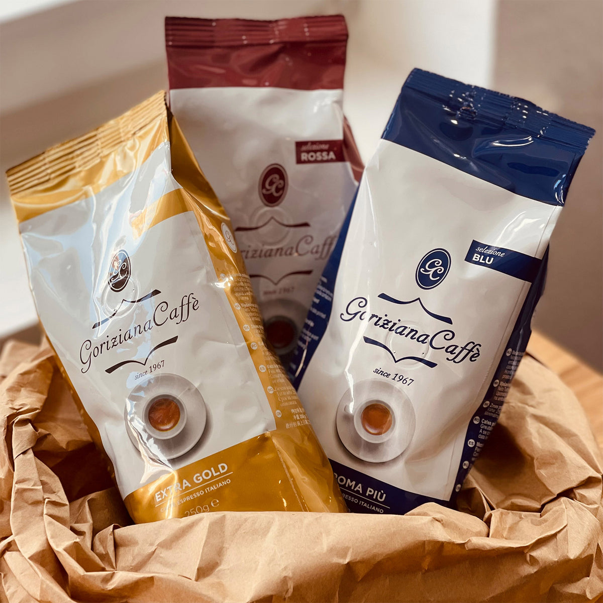 Espresso Bohnen Probierpaket von Goriziana, 3 x 250 g