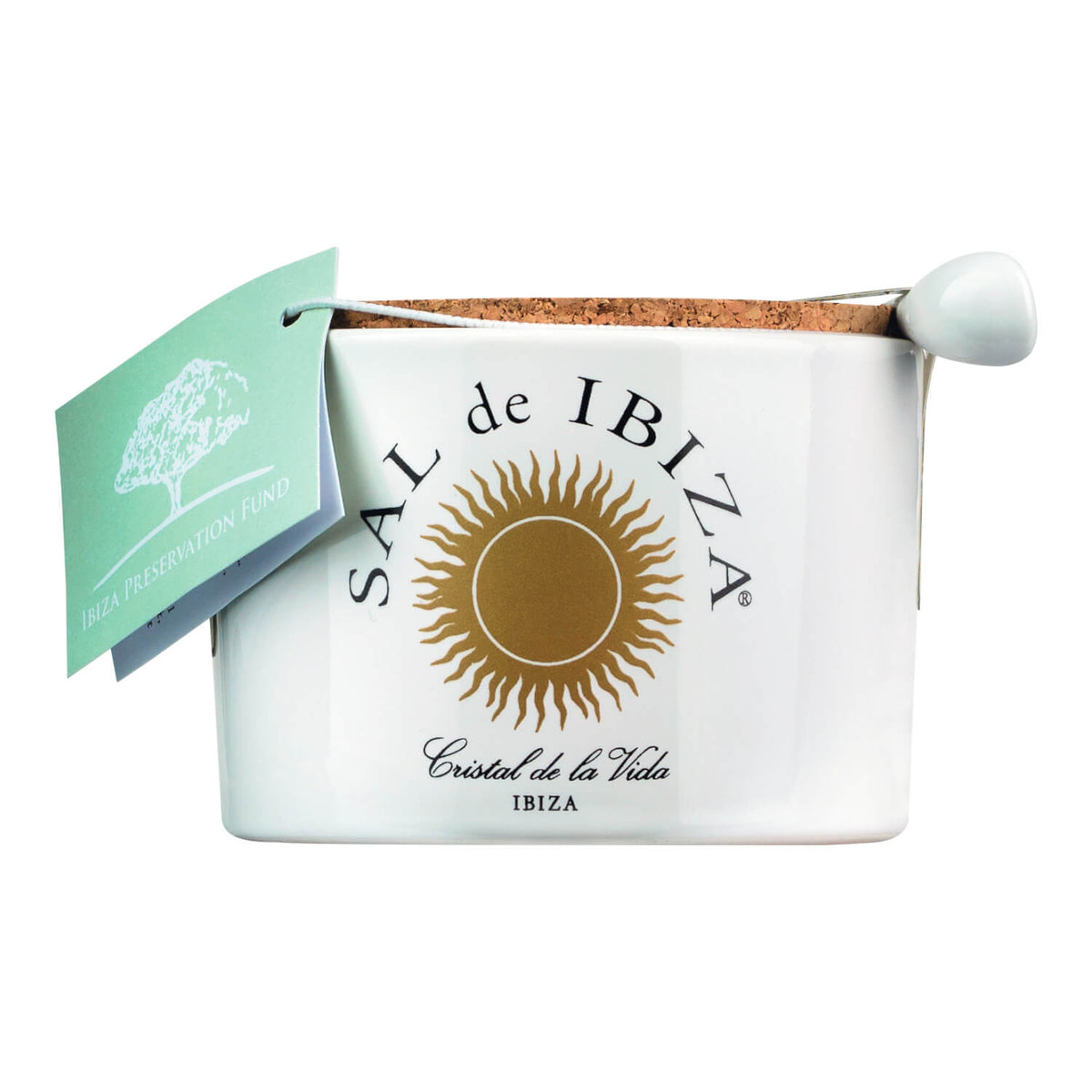 Die Sonderedition Isla Blanca von Sal de Ibiza steckt in einem weißen Keramiktöpfchen. Das besondere Kräutersalz mit Aromen von Anis, Fenchel, Kamille, Lavendel, Orange, Minze, Salbei, Thymian, Wacholder und Rosmarin als ätherische Öle ist außerdem mit Zitronenzesten und Kamillenknospen gemischt. Ein Teil des Verkaufspreises geht an den Ibiza Preservation Fund, der lokale Projekte der Insel unterstützt, die nachhaltig die natürliche Schönheit der Insel erhalten oder wieder herstellen.