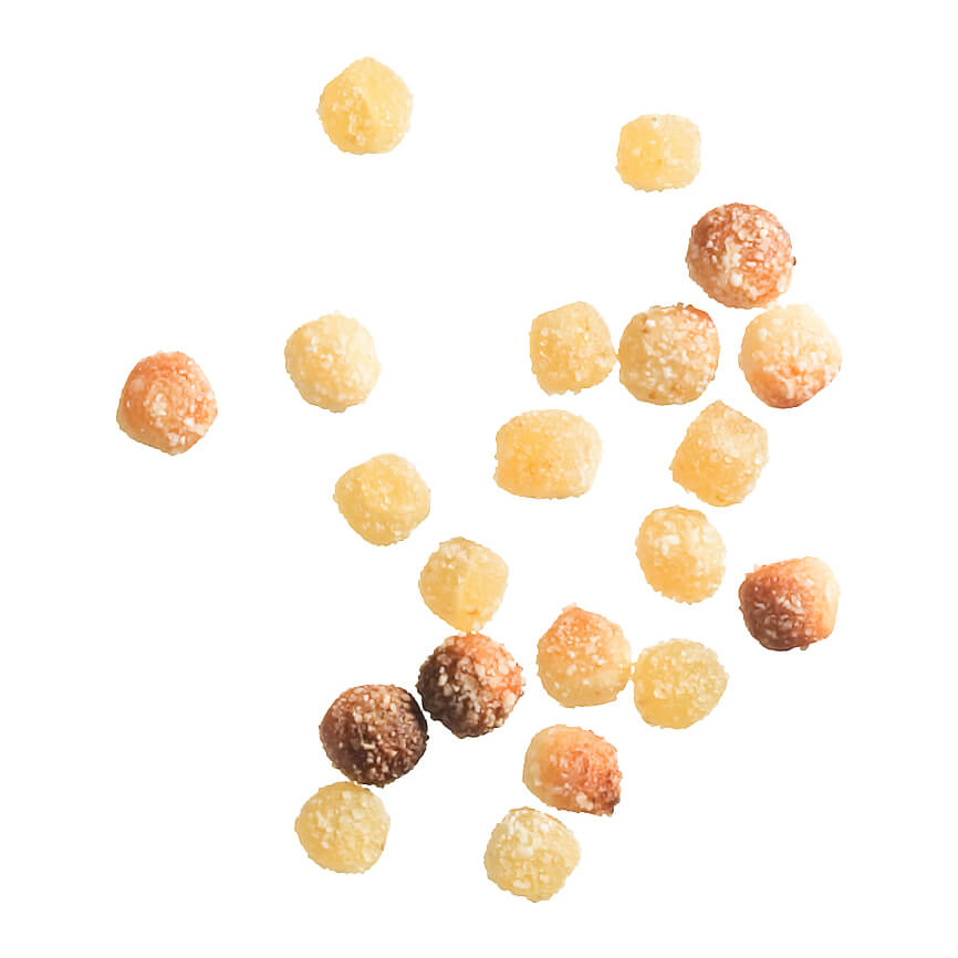 Dieses aus Sardinien stammende handwerkliche Pastaformat wird nur mit Hartweizengrieß und Wasser hergestellt, indem der Grieß in einer großen Tonschüssel "gerieben" wird, wo eine Mischung aus Wasser und Safran (die die wunderbare intensive gelbe Farbe verleiht) aufgespritzt wird und wo "von Hand" diese unregelmäßig geformten Grießkugeln entstehen, die dann im Ofen geröstet werden. Das traditionelle Rezept will die Fregola mit Venusmuscheln oder Risotto mit Meeresfrüchten und Zitronenschale oder mit Rübenspitzen, Kirschtomaten, Knoblauch und Parmigiano Reggiano gekocht; Alternativ können Sie dieses charakteristische Format mit gebratenen Zucchini, Kirschtomaten und Nativem Olivenöl Extra, gewürzt mit Chilischote, anrichten oder nach dem Rezept von Starkoch William Zonfa, der es mit hausgemachter Wurst, Blaubeeren und Nativem Olivenöl kocht.