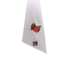 Die Küchentücher in weiß mit diamantenem Webmuster bestehen aus 100% Baumwolle-Jacquard. Sie werden in Handarbeit mit einem Motiv einer Erdbeere in einem kleinen Familienbetrieb im Norden von Portugal bestickt. Sie sind außerdem Waschmaschinen- und Bügelfest