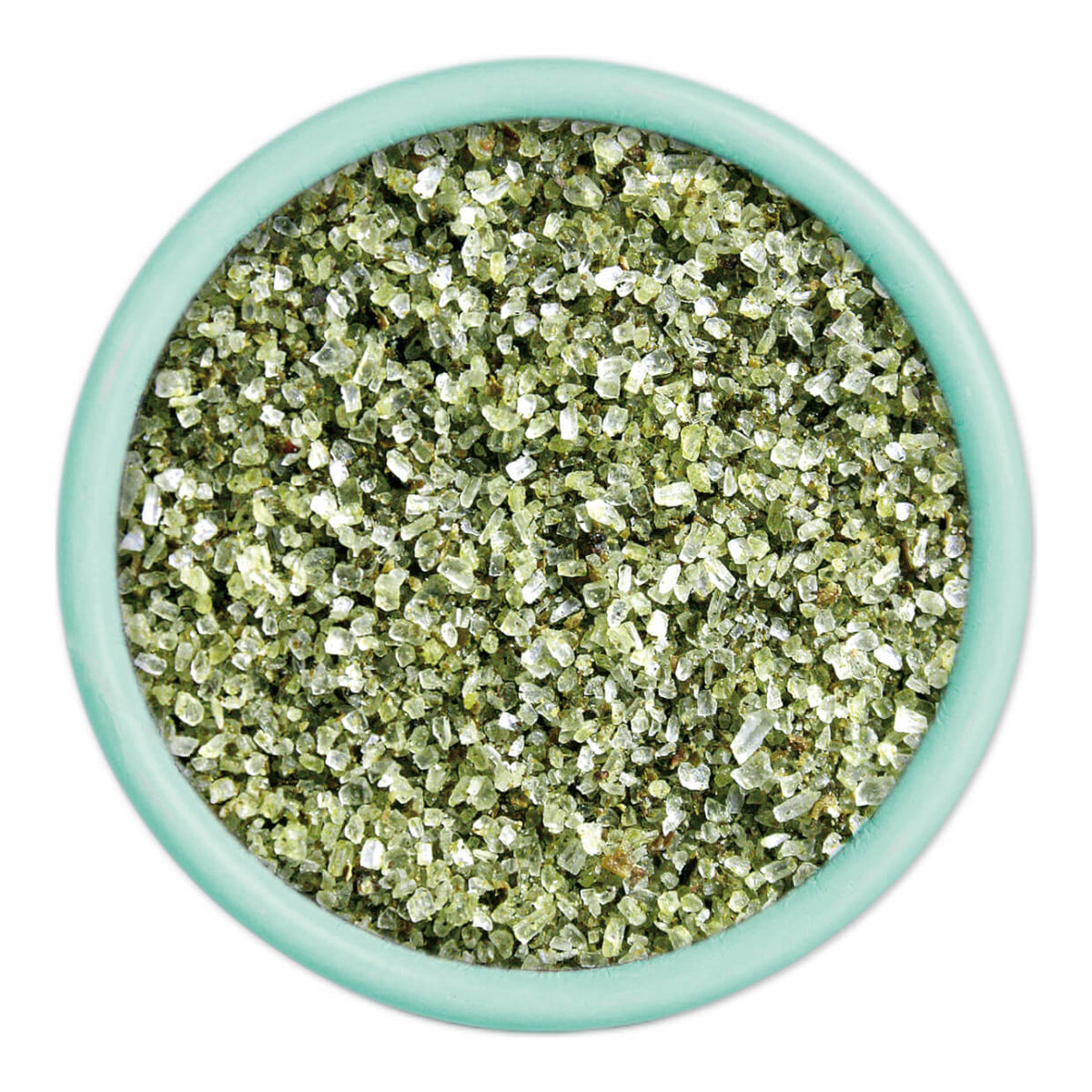 Meersalz 60%, gestoßener grüner Pfeffer, Zitronenschale, Zitronenöl