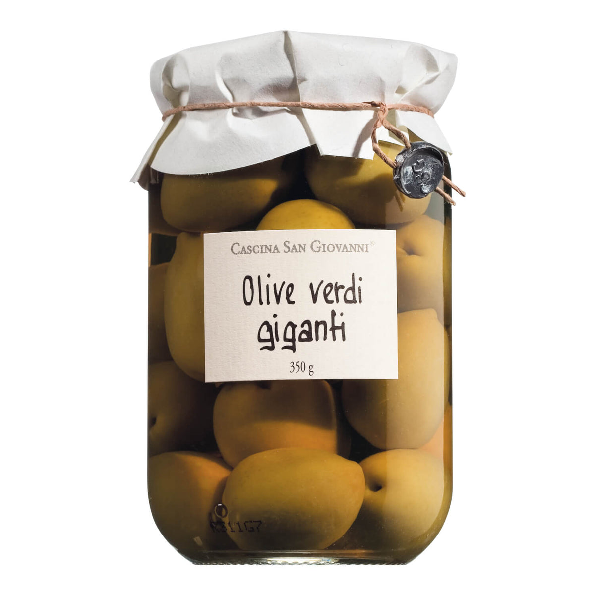 Grüne Oliven mit Stein in Salzlake von Cascina San Giovanni, 350 g