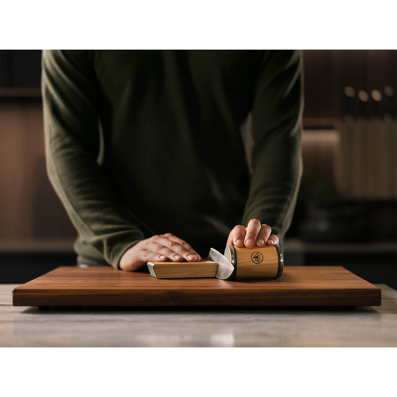 Der HORL3 Rollschleifer in Nussbaum besitzt eine neuartige Diamant Schleifscheibe, eine Keramik Abziehscheibe sowie wechselbare Schleifscheiben mit einem neu entwickelten Quick Lock Verschluss. Die Magnetschleiflehre hat zwei Schleifwinkel von 15 und 20 Grad.