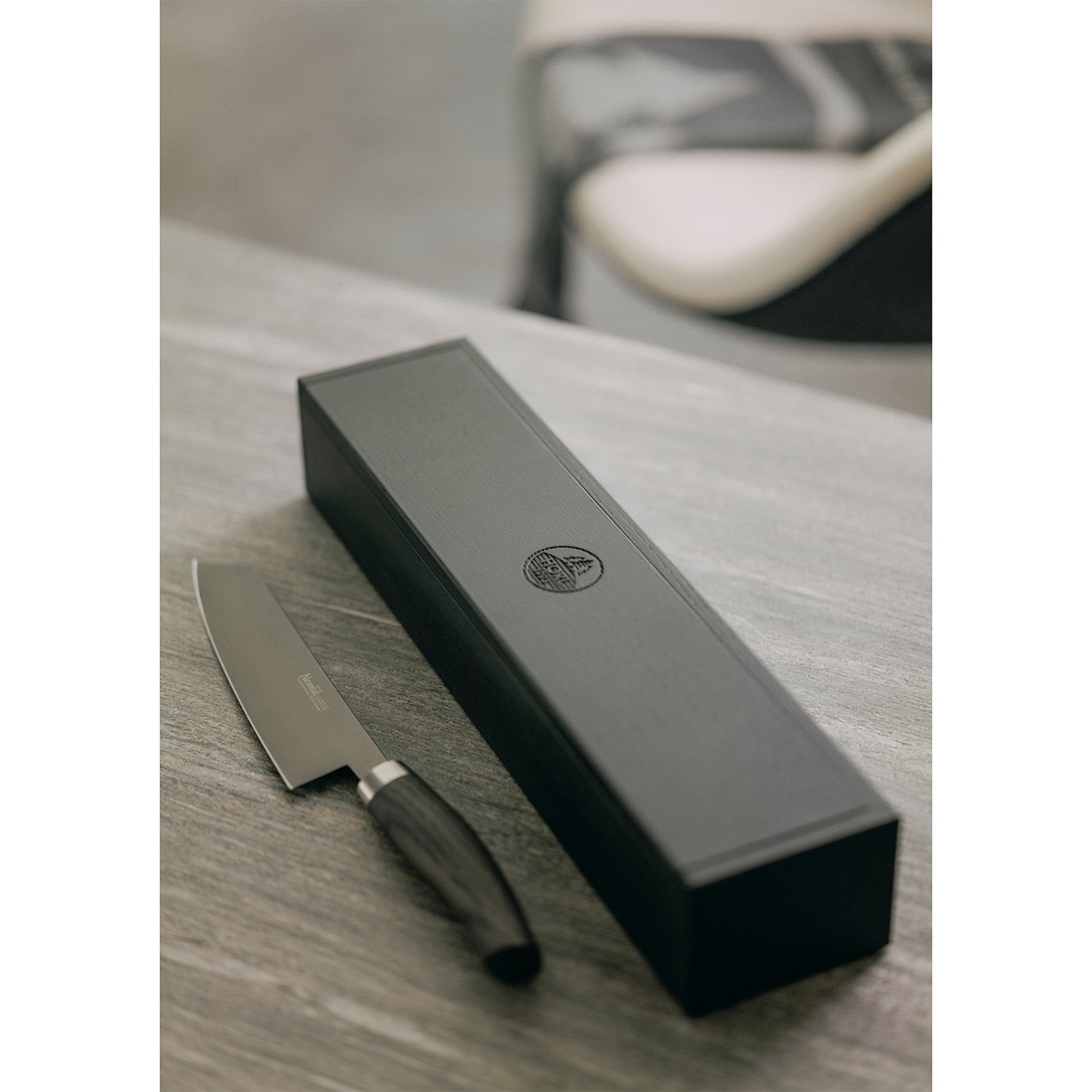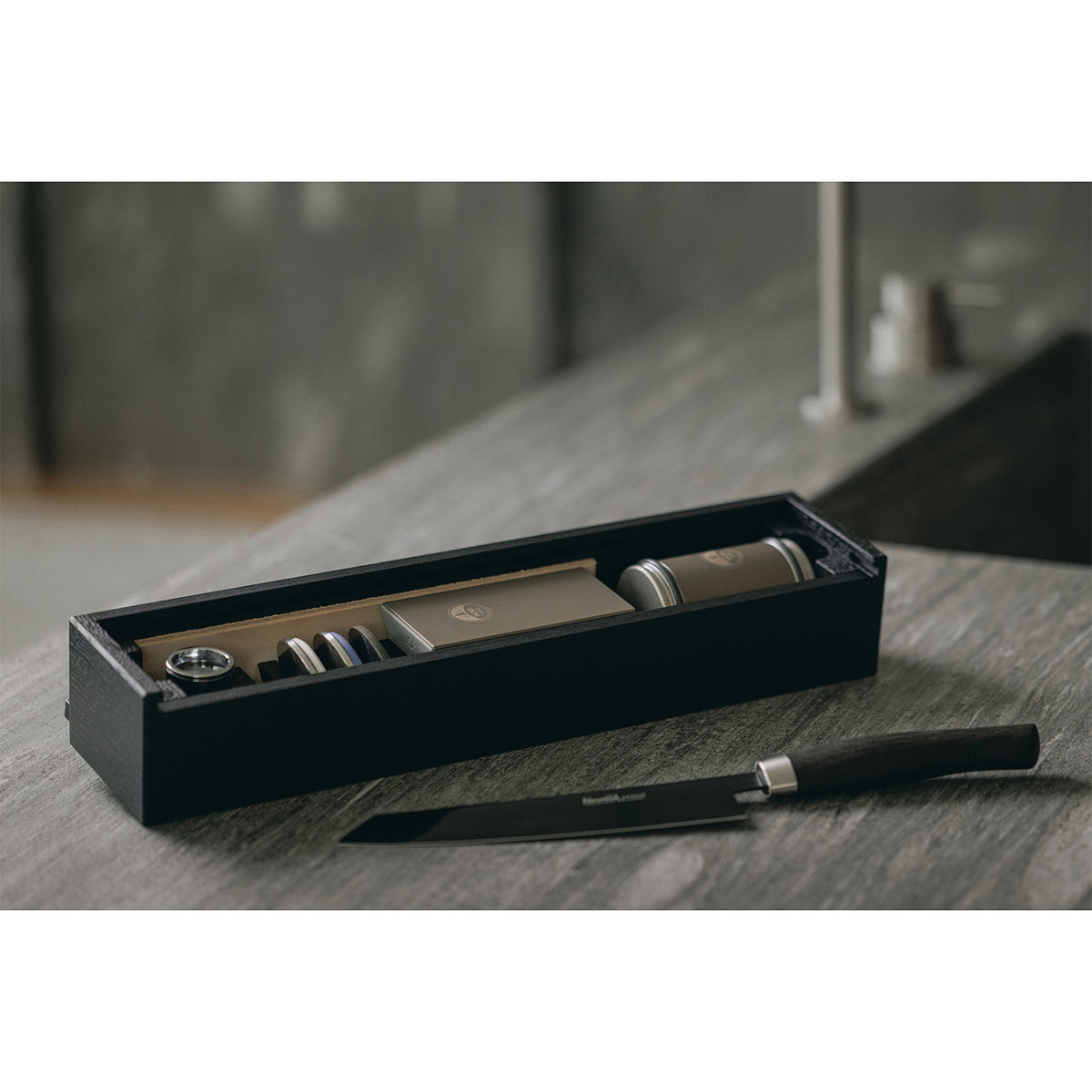 Mit der HORL® Box hat die Manufaktur aus dem Schwarzwald eine exklusive Aufbewahrung für den Rollschleifer und das gesamte HORL® Messerschärf-Zubehör geschaffen. Ob für den sicheren Transport oder immer griffbereit in der Küchenschublade – in der HORL® Box sind Rollschleifer und Zubehör bestens aufgehoben. Vom magnetischen Verschlusssystem bis hin zur raffinierten Innenausstattung ist jedes Detail genauestens durchdacht. Gleichzeitig besticht die HORL® Box durch ihre einzigartige Eleganz. So macht Ordnung Freude.