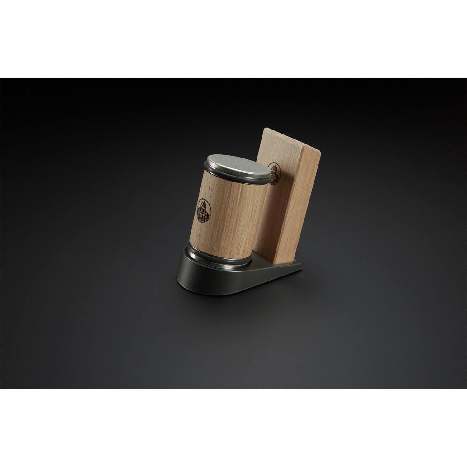 Das HORL Dock in graphit ist die ideale Ergänzung für Ihren HORL oder HORL Pro Rollschleifer. Diese stilvolle Station hält die Schleiflehre sicher griffbereit und verleiht Ihrer Küche eine elegante Note. Das rutschfeste Design sorgt für Stabilität, während die Neigung der Schleiflehrenablage für optimale Stand und Sicherheit bietet.