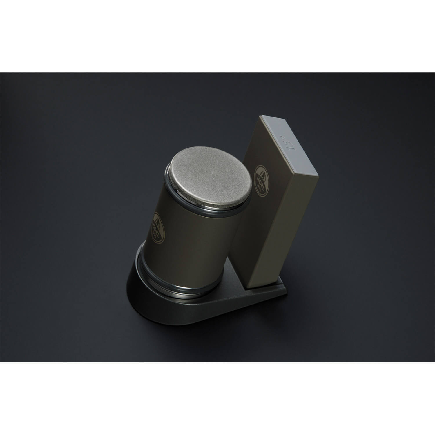 Die magnetische Halterung der Schleiflehre sorgt dafür, dass sie immer aufrecht und griffbereit ist. So können Sie Ihren Rollschleifer im HORL Dock aufbewahren und ihn bei Bedarf sofort nutzen. Die Pulverbeschichtung der Station in graphit fügt sich nahtlos in das Design des HORL Pro ein und schafft einen harmonischen Gesamteindruck.