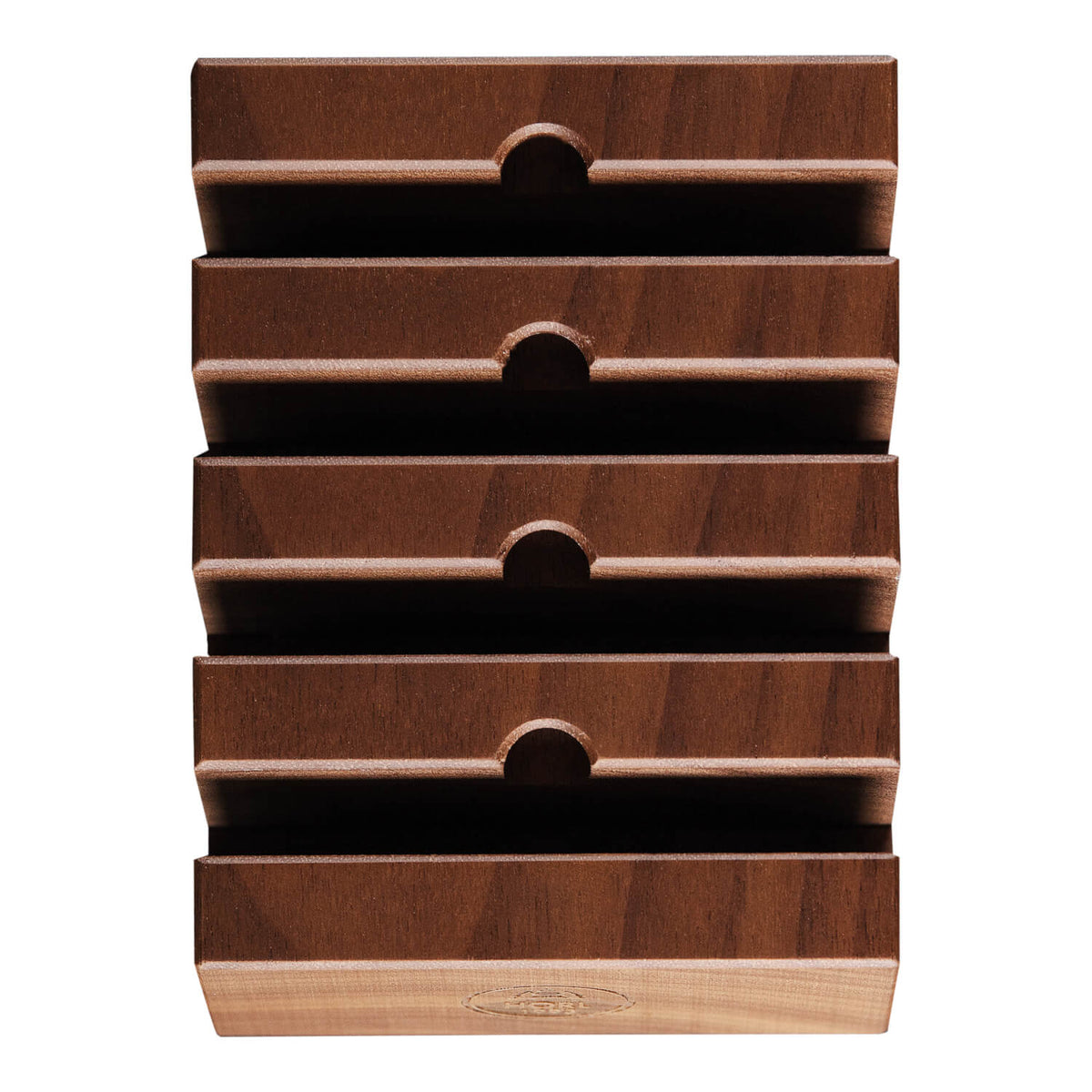 Optimale Aufbewahrung für HORL Rollschleifer Schleifscheiben. Passend für Diamant und Edelkorundscheiben. Kapazität für vier Schleifscheiben. Hergestellt im Schwarzwald. Produkt wird ohne HORL Schleifscheiben geliefert.